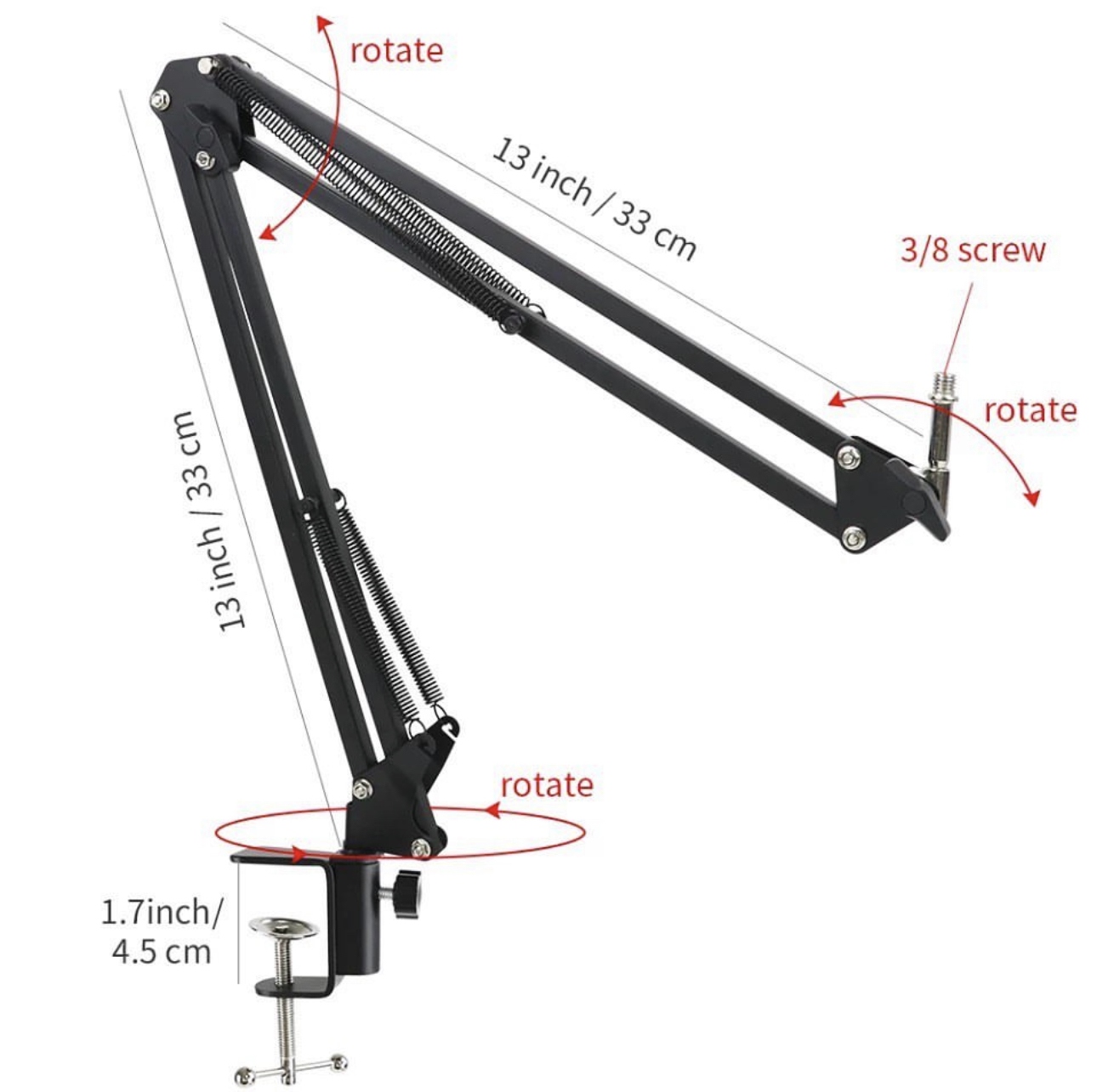 Specifications: Voltage: 85V-265V Material: Metal Body Color: Black Bulb: 155watts Features: The lamp itself takes up to 155watt bulb Modern and sophisticated black swing arm design. Steel spring and tension control knobs. Clamps mounts easily to any studio designs tables, shelves and surfaces that are vertical or horizontal. Ideal for any studios, home or office used. Plug: US/EU Plug Package included: 1 × Swing Arm Table Lamp with 155watts bulb