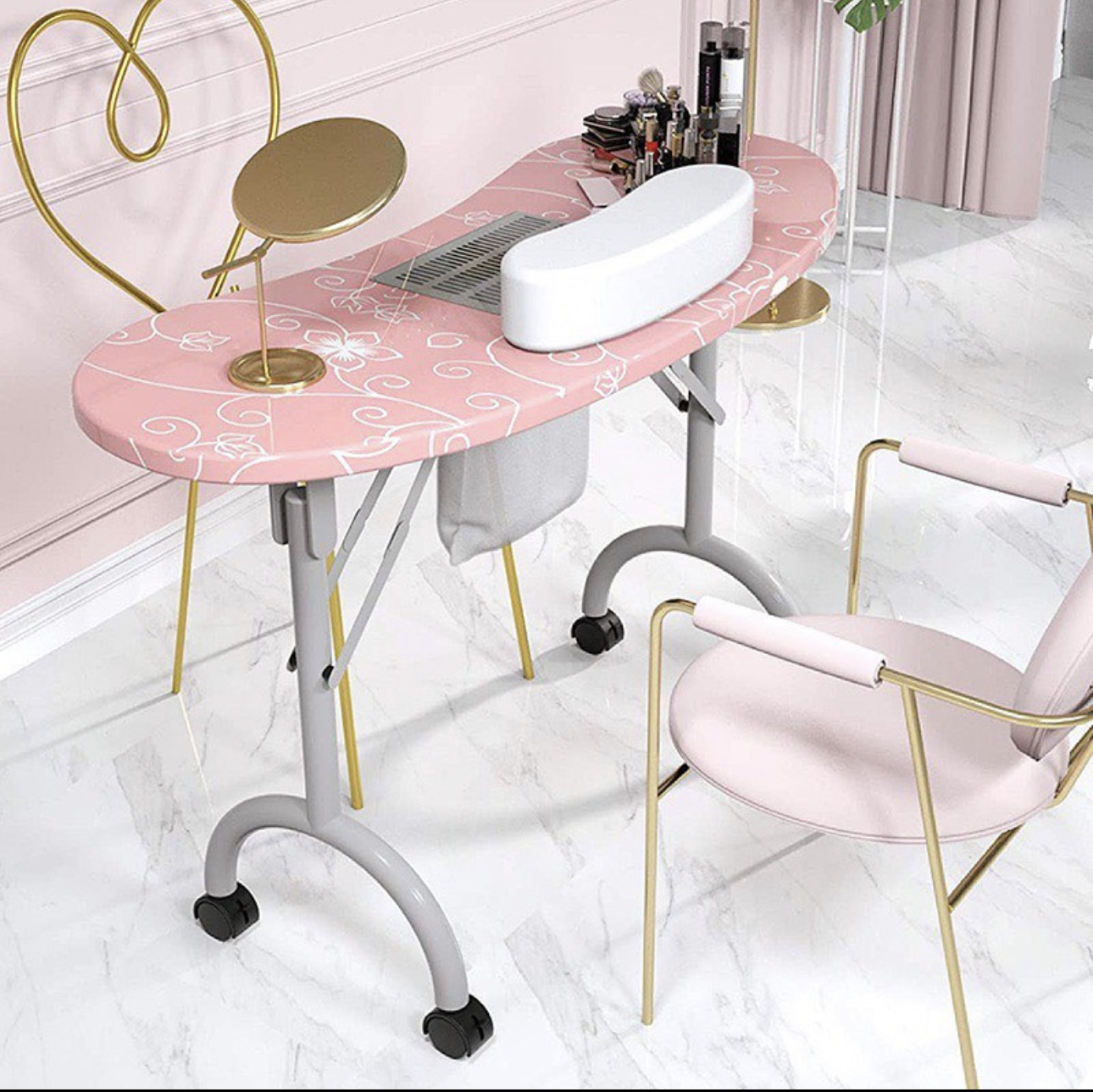 Pink movable manicure table with dust extract