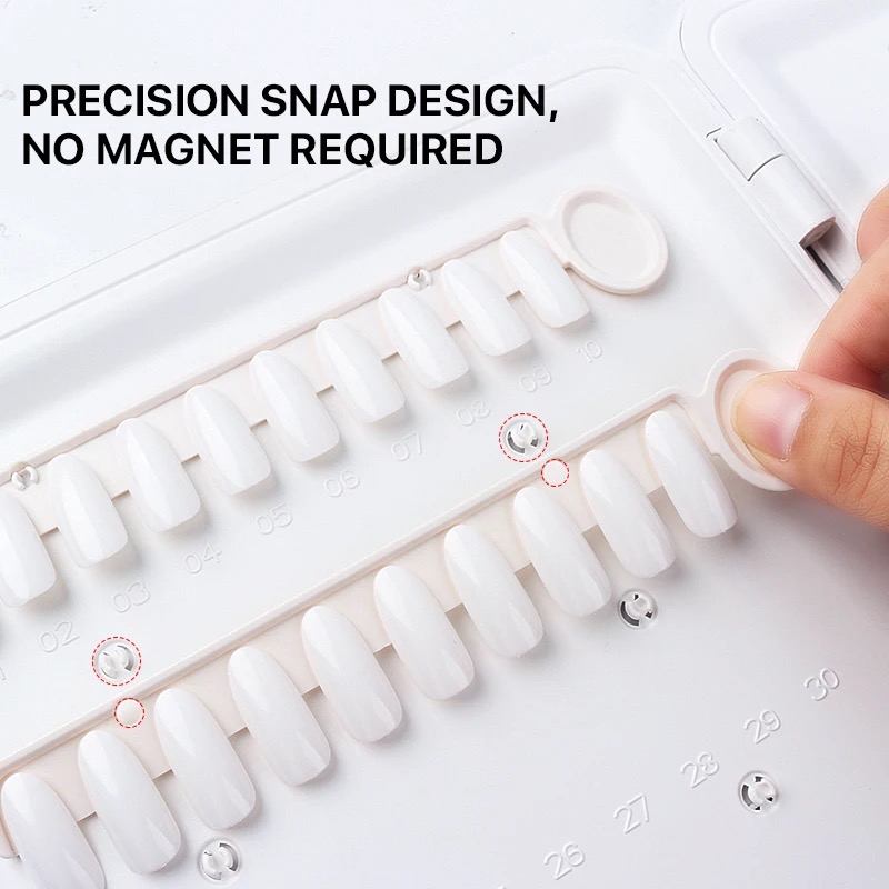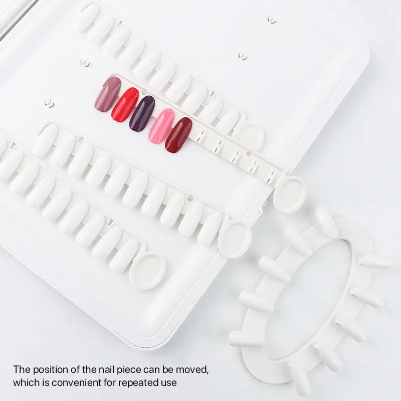 HOT SALE 120 Colors Nail Color Display Book Disassemble Snap On Design Nail Display Book with 120Pcs Nail Tips White for Manicurist Feature: 1. 120 Nail Pieces: Nail Art Show This expansion can display 120 nail pieces, you can show your nails in 120 colors. 2. Snap on Design: Nail color display adopts snap on design, which can be disassembled freely, and the color can be changed at any time, which is easy to operate. 3. Easy to Arrange: The Nail display makes it easy to swap and move the nail strips to make room for new colors and new styles of nail pieces, allowing them to be freely combined at any time. 4. Easy Installation: Easy to install, no glue, no sticking required, both the display strip and the nail piece can be snap fastened. 5. Plastic Material: Nail polish display tips are made of plastic material, which is wear resistant and durable, and can be used for a long time. Specification: Item Type: Nail Color Display Book Material: Plastic Product Color: White Package List: 1 x Showcase 120 × Nails Tips 14 × Nail Strips 1 x Nail Display Stand