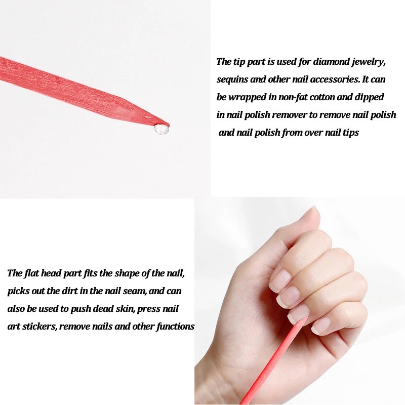 Tags: 100Pcs/Bag Orange Wood Sticks 4 Different Sizes for Cuticle Pusher Cuticle Remove Tool Nails Manicures Colorful Wooden Sticks