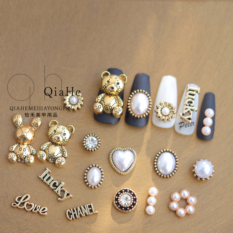 Pearl mix with retro gold nail jewelry (CHB01016)