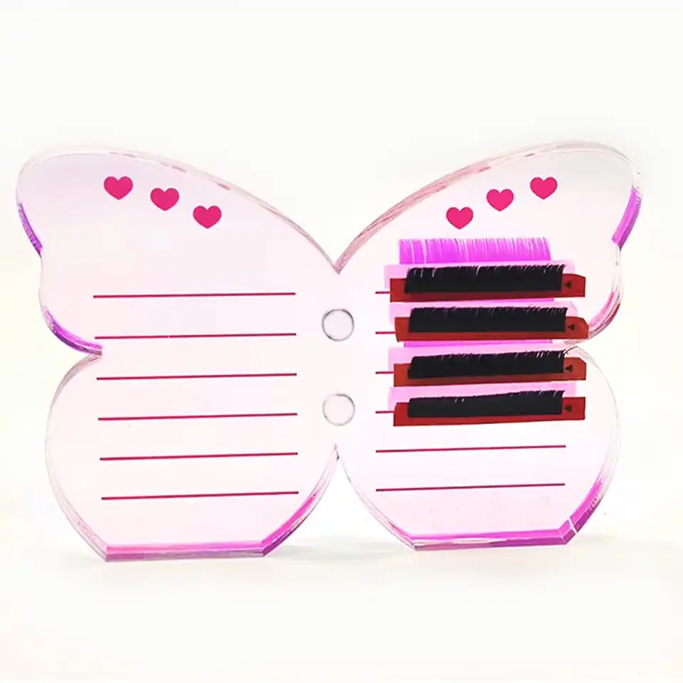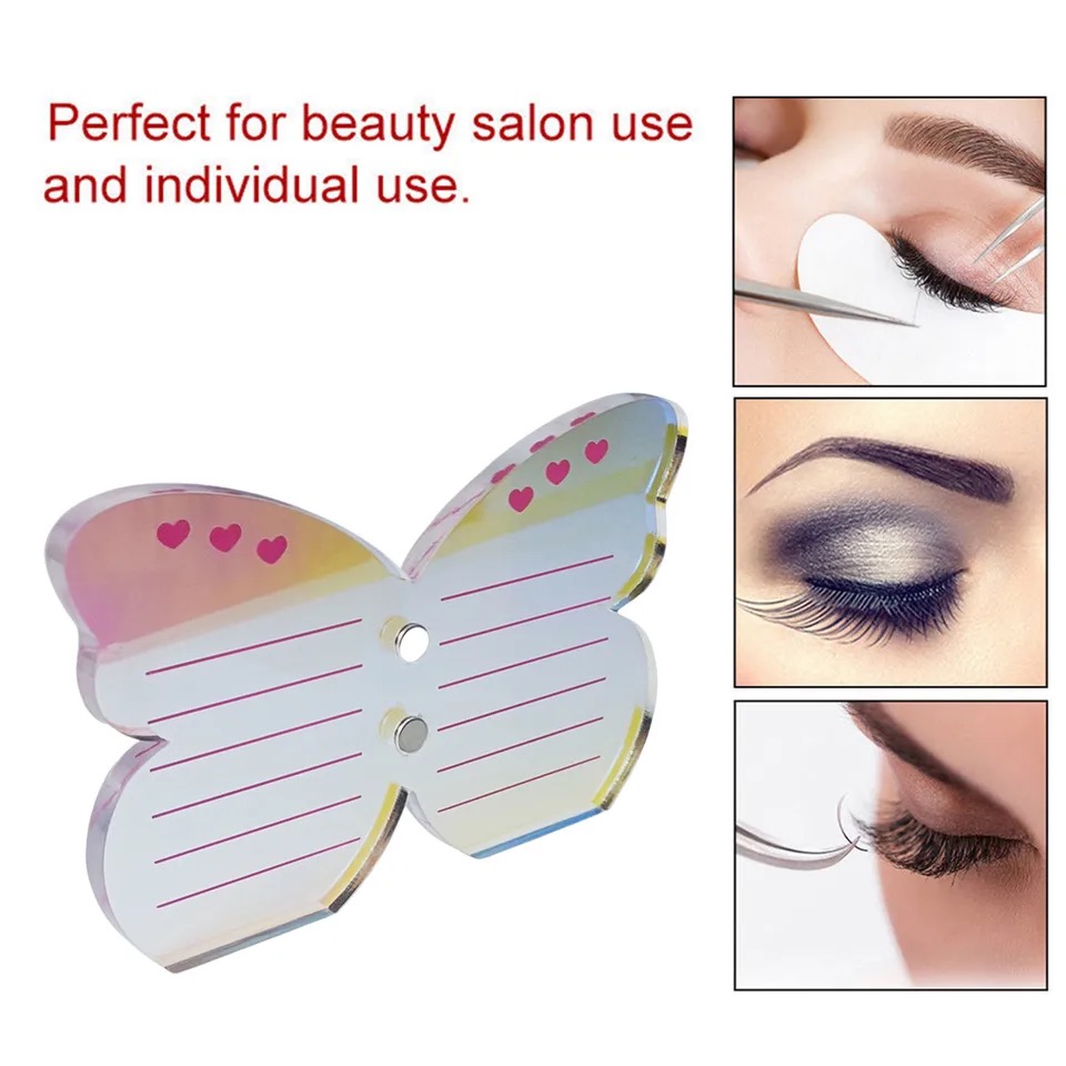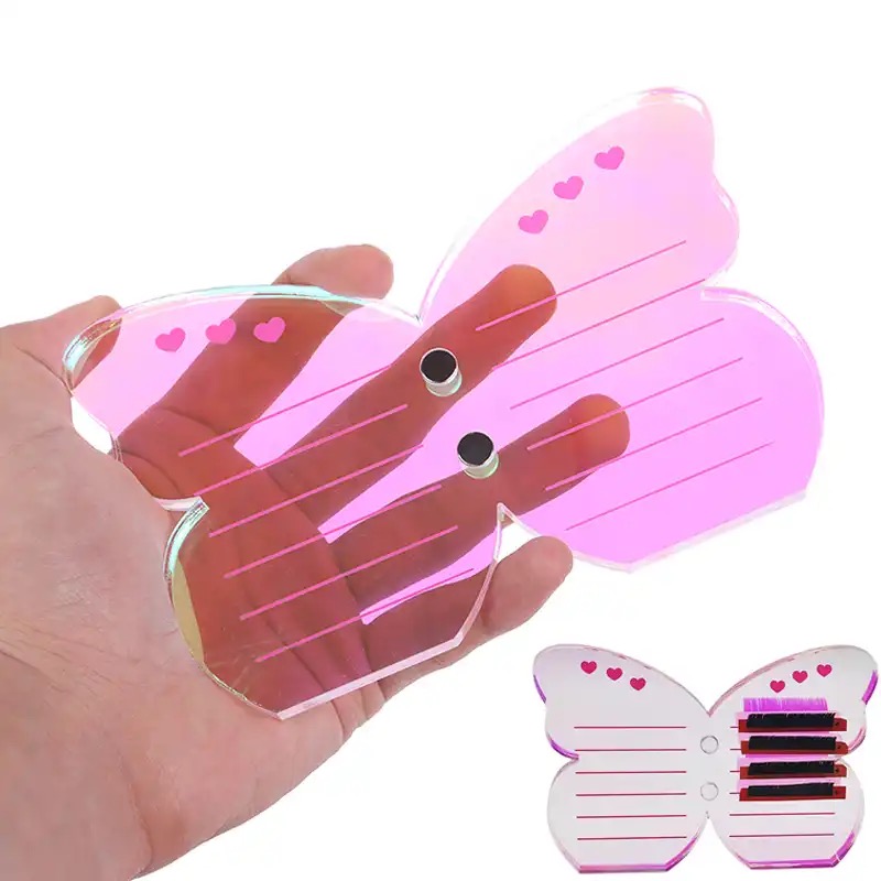 Product Name :Butterfly acrylic eyelashes pallet design Material : Acrylic Function:Magnify the eyelash extension, Clear different lengths of eyelashes. Tips: We have forced the glue holder into the groove , More convenient to use !