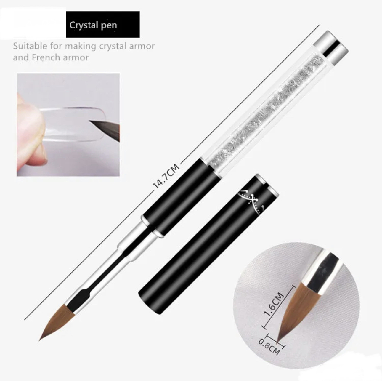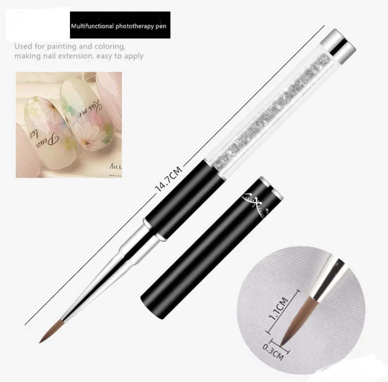 Description: 100% Brand new & High quality Ice black brush, ice black penholder. Japanese nylon wool. Moderate softness and toughness, meticulous process, not easy to depilate, better operability. Selected acrylic material for the pen holder. Each model is widely used in daily manicures, not only suitable for professional beauticians, but also very friendly to novices. Special for finest detailing tasks, like painting leaves, flower petals or other pattern. You can choose your favorite UV Gel or nail polish, use nail pen to coat or paint a pattern on your nail, or attach nail sticker and use LED light to dry it out. Please wash it carefully after use, keep it clean and safe for reuse! Specifications: Type: Nail Brush Style: Fashion, simple, durable, ice black Material: Nylon wool, Acrylic Color: As the picture shows Size:As the picture shows Package Included: 1pcs Nail Brush Note: -Due to hand measure, the size may have 0.5-1 cm error -Due to Different Monitor, the color may have difference -Due to long shipping, the item may damage in transit, if the item damage, pls contact us firstly immediately before leave feedback, thanks for your understanding zuofily.