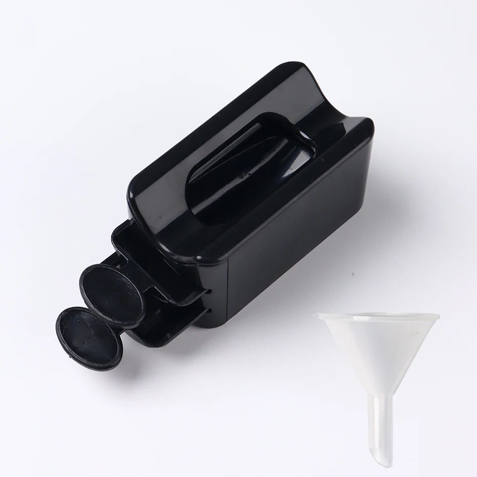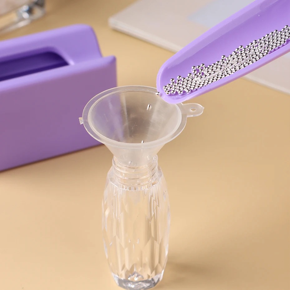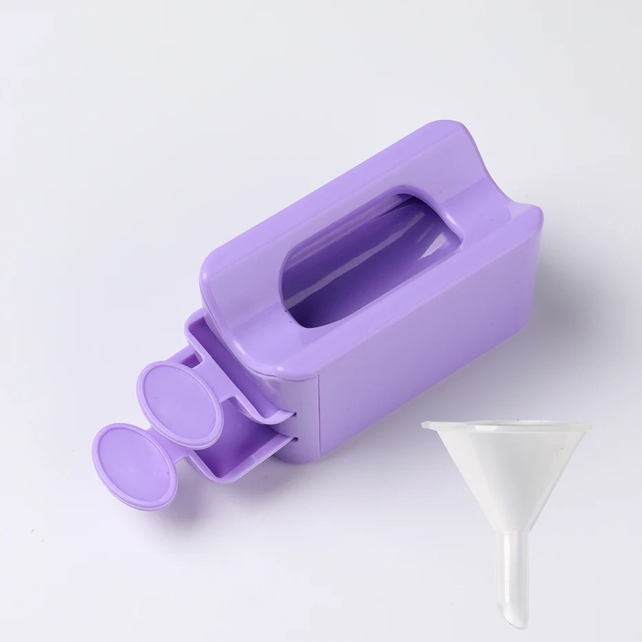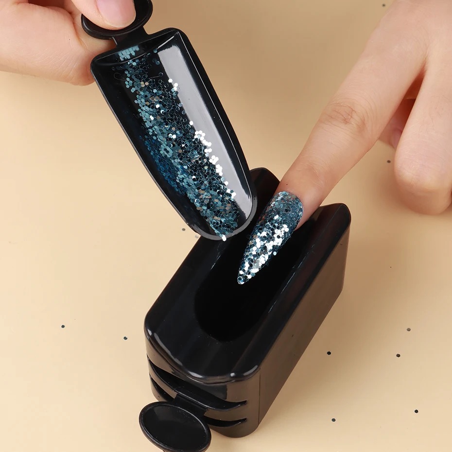 Product Description: 1.The nail dipping tray is made of high-quality plastic which is practical, durable, light weight. 2.It is an essential nail tool for making perfect smile lines and reducing nail dip powder or glitter waste, can be used as a French nail mold, helps you create attractive French manicure with this nail dip tray. Convenient to design nail art at home and achieve nail decoration like what you can get from salon nail 3.The system not only saves time, but also helps you collect the nail art powder and you will save your precious product with the tray’s ability to catch excess powder. 4.The two-tray design helps to cover evenly without destroying the design or pattern. It is very suitable for glitter and powder dipping. Just pour the powder on the nail while holding your finger over the hole, make the nail pattern evenly while the second tray will collect the excess powder. Pull out the second tray and pour the collected powder back into the manicure dust storage box. Equipped with a funnel, perfect for use with nail art. It can be used as nail art decoration, A good partner for professional nail salons and beginners and dip powder lover. Great for natural and artificial nails, ideal for decorating with variety. Make your own attractive nail art styles. #Attached is a mini funnel.