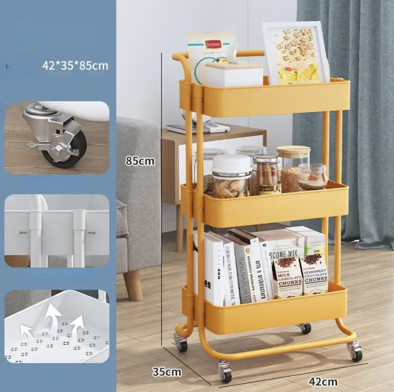 Description 3 Tier Rolling Cart Heavy Duty Utility Carts With Wheels Rolling Cart With Handle And Lockable Wheels SPA Storage Shelves Features: 1. Made of ABS Material, 2. Small volume, large capacity, 3. Move freely, easy to use. Specification: Product name: Multifunctional storage trolley Material: ABS Colors: White, Black, pink Product size: 75*26.5*38cm Packing list: trolley*1