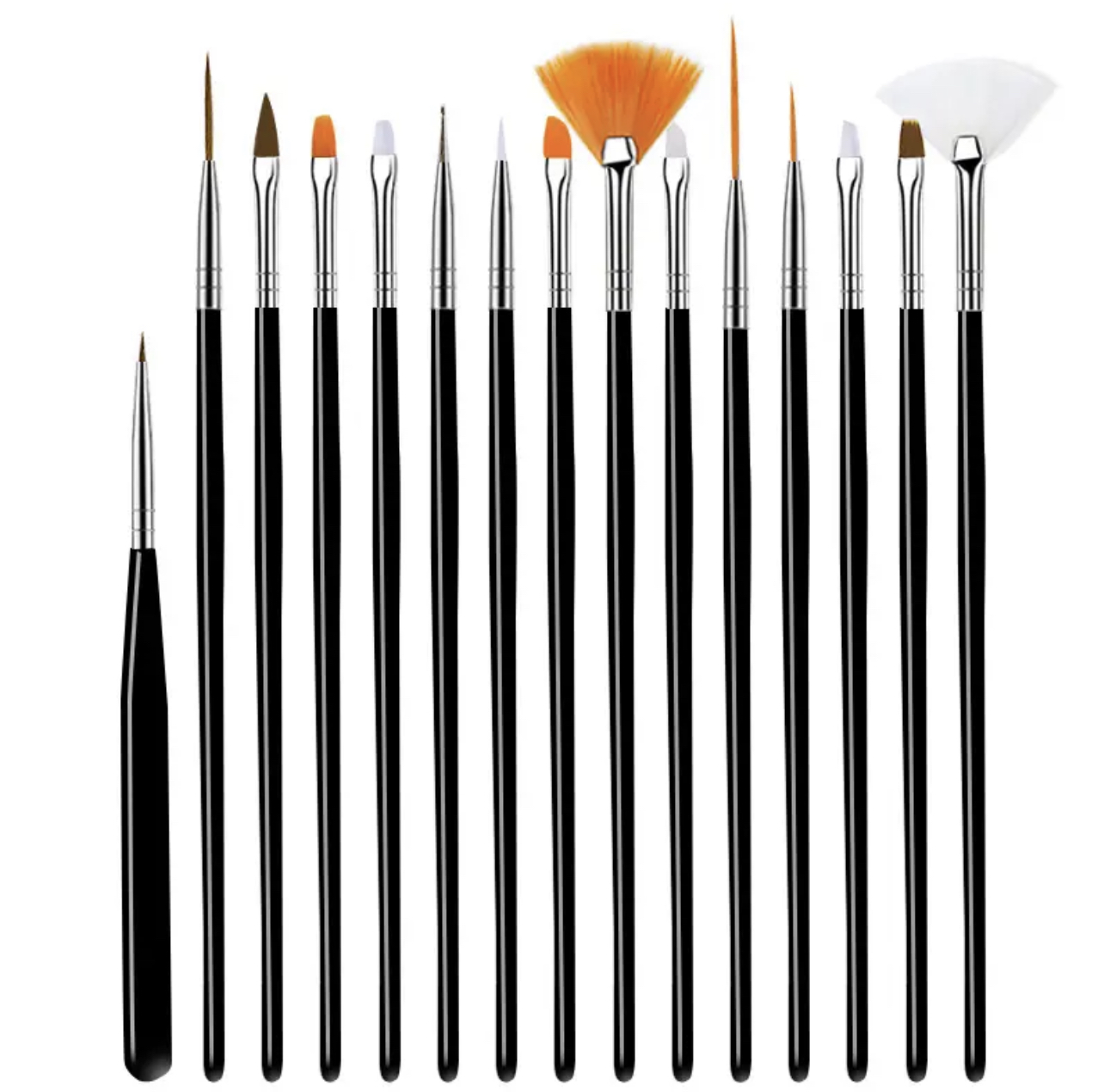 Features: - Ideal for fine nail art work. - Perfect for professional Nail Salon - Easy to handle and use. - Allow you to create beautiful nail designs in seconds! Specification: Size:as the picture shows Color: Pink, White, Black, Rose red Material:Nylon Hair,Plastic Package includes: 15Pcs/Set Nail Brush Note: 1.Due to the different monitor and light effect, the actual color of the item might be slightly different from the color which is showed on the pictures. 2.Please forgive 1 cm/0.39"-3 cm/1.18" measuring deviation due to manual measurement.
