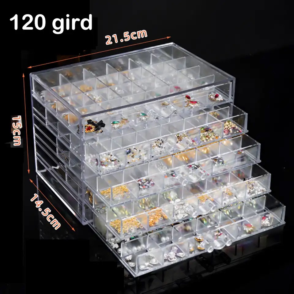 1. The transparent storage box is made of high-quality acrylic material, which is durable, dust-proof and moisture-proof. 2. Stackable combination to save desktop space. 3. Multifunctional: It can easily store jewelry, cosmetics, nail polish of various sizes, even necklaces, bracelets, big earrings, powder, lipstick, masks, etc. 4. Drawer compartment design, better protect jewelry, neat and clean, easy to take. Specification Material: Acrylic Color: Transparent Size: 5 layers: 21.5*14*14.5cm Drawer size: 20.4 * 13.7 * 2.7cm 24 Grid drawer, single size: 3.2 * 3.2 * 2.7cm 6 Grid drawer, single size: 3.5 * 3.5 * 2.7cm Packing List: 1 * Jewelry Storage Box