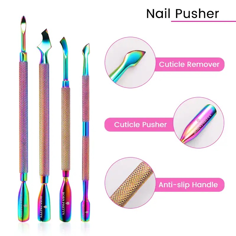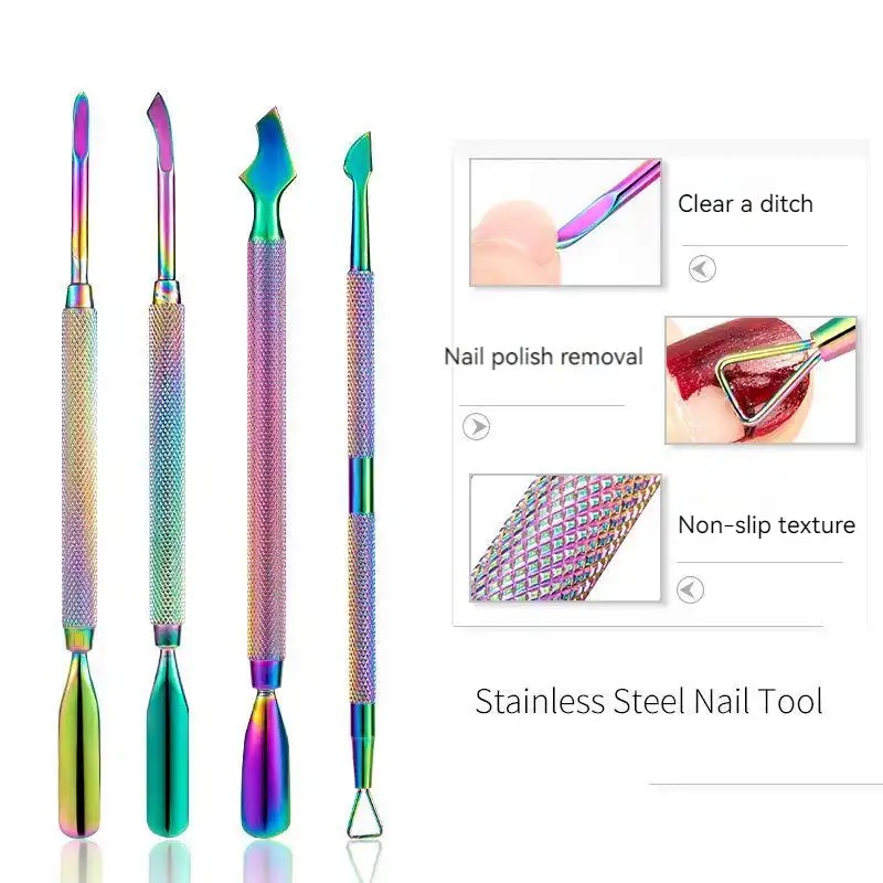 Dual end Rainbow Stainless steel cuticle pusher (CHB00435)