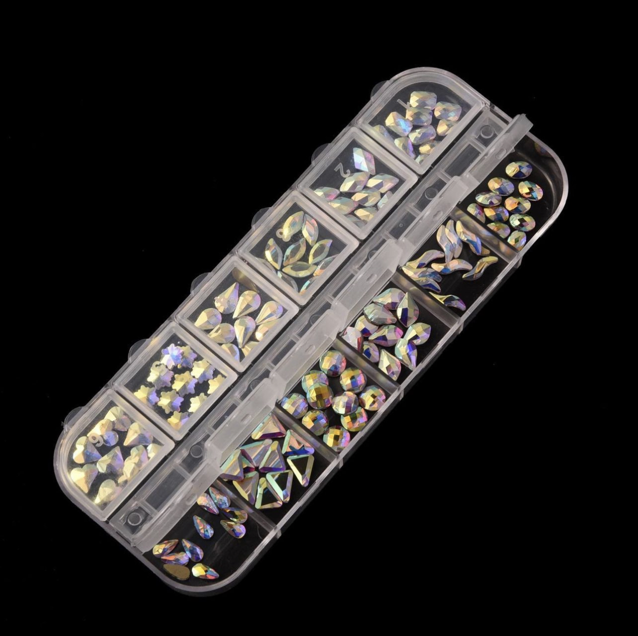 Specification: Size: Mixed Size Design: Flatback Material: Glass Package Contents: 1 Box 12 Girds Colorful Nail Art Rhinestones Features & Usage: 100% Brand New and High Quality 3D Rhinestone Nail Decorations Easy to apply on natural or artificial nails Clean the surface of your nails, apply the base polish, put the shape you liked on the nails You also can use them to decorate your phone, home,glass,ec