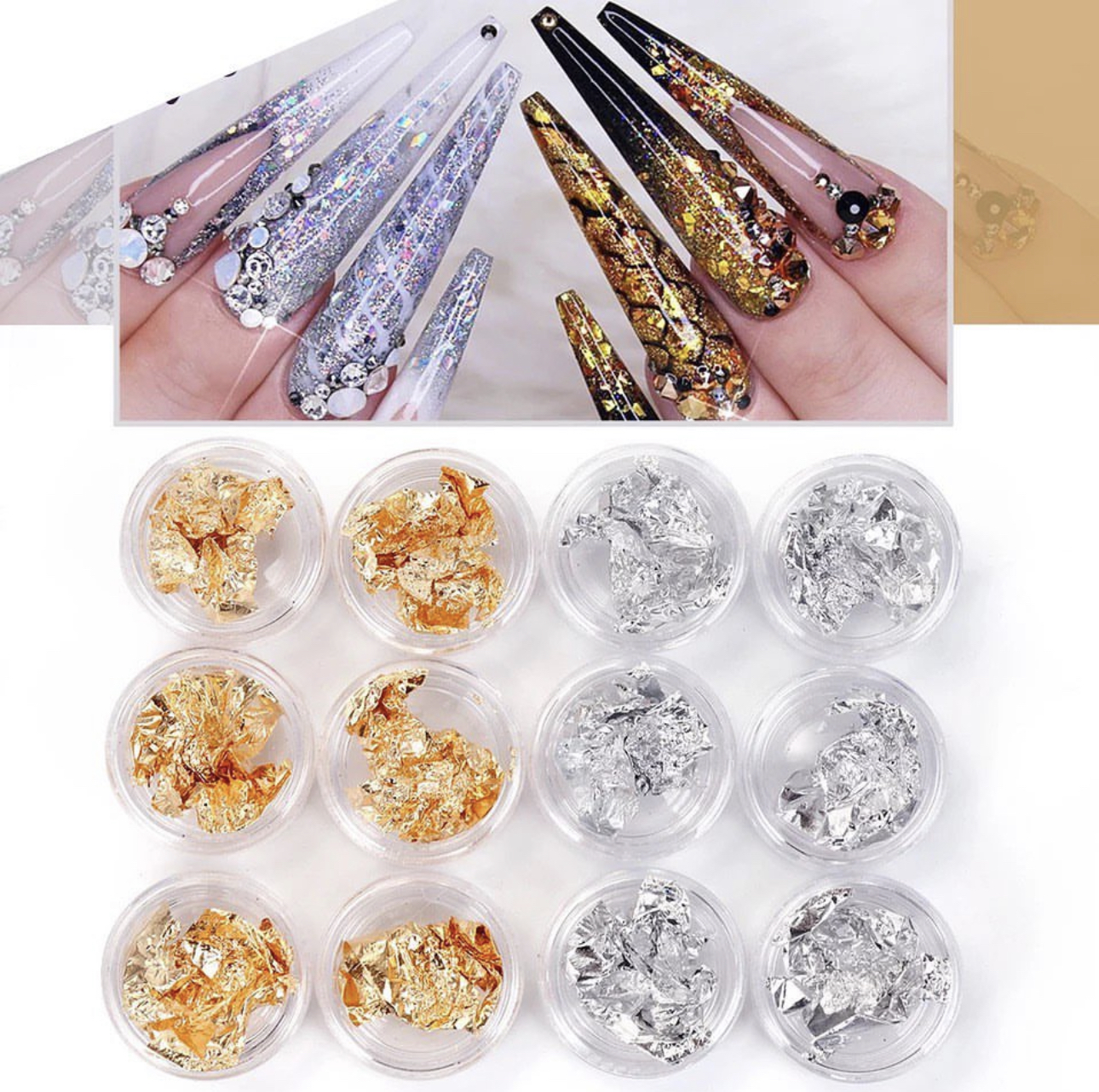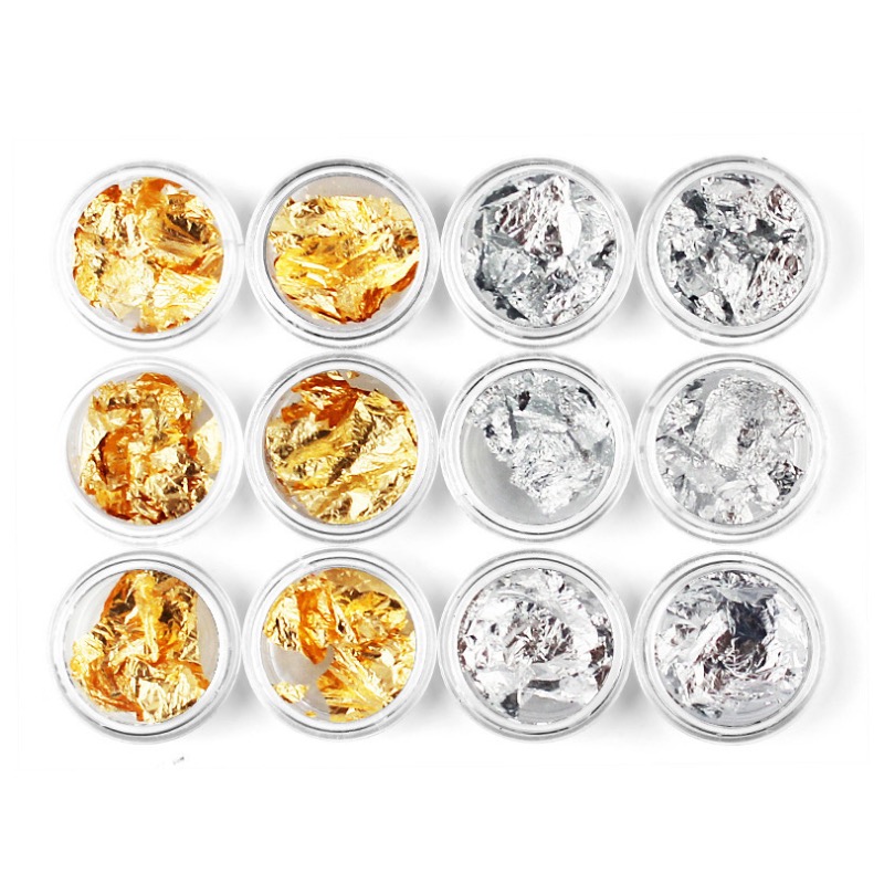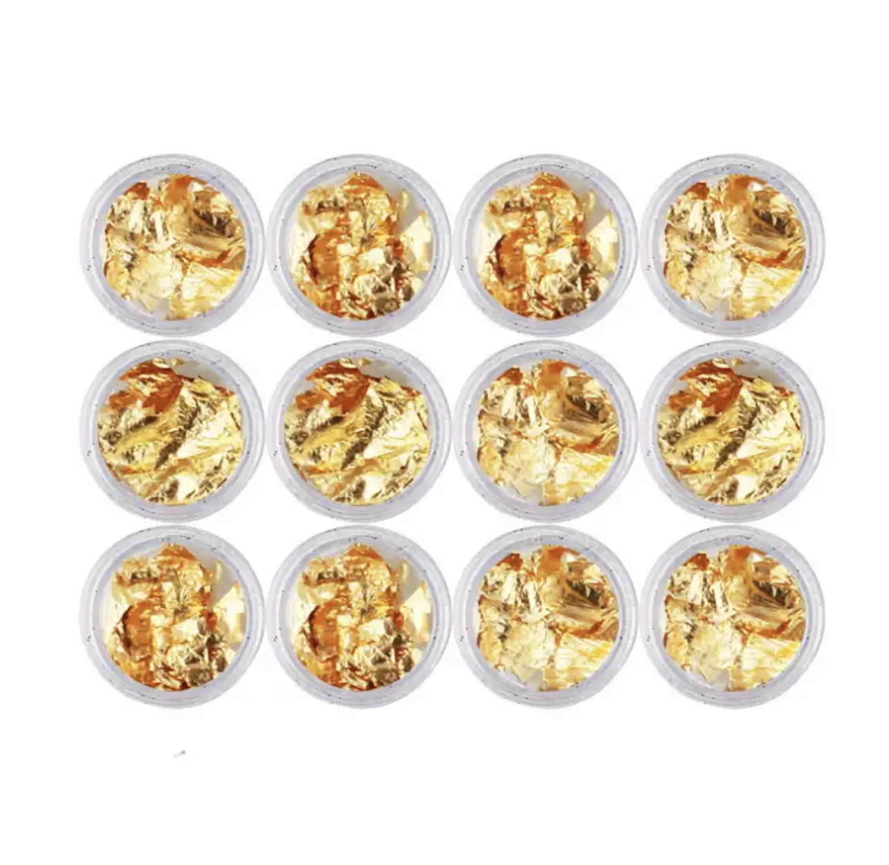 2. Set with 6 or 12 pots gold or silver foil flakes.