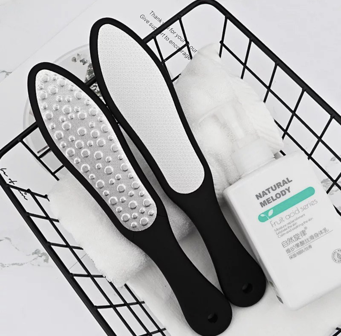 This product allows you to have a pair of charming feet and avoid the awkward embarrassment of the foot skin. This product has a double-sided file board that allows you to experience different enjoyment. Features: 1. Suitable: Suitable for young and old 2. Occasions:Home bathroom foot bath 3. Sturdy and durable, washable, exquisite workmanship Material:Stainless steel + plastic Package: 1PC