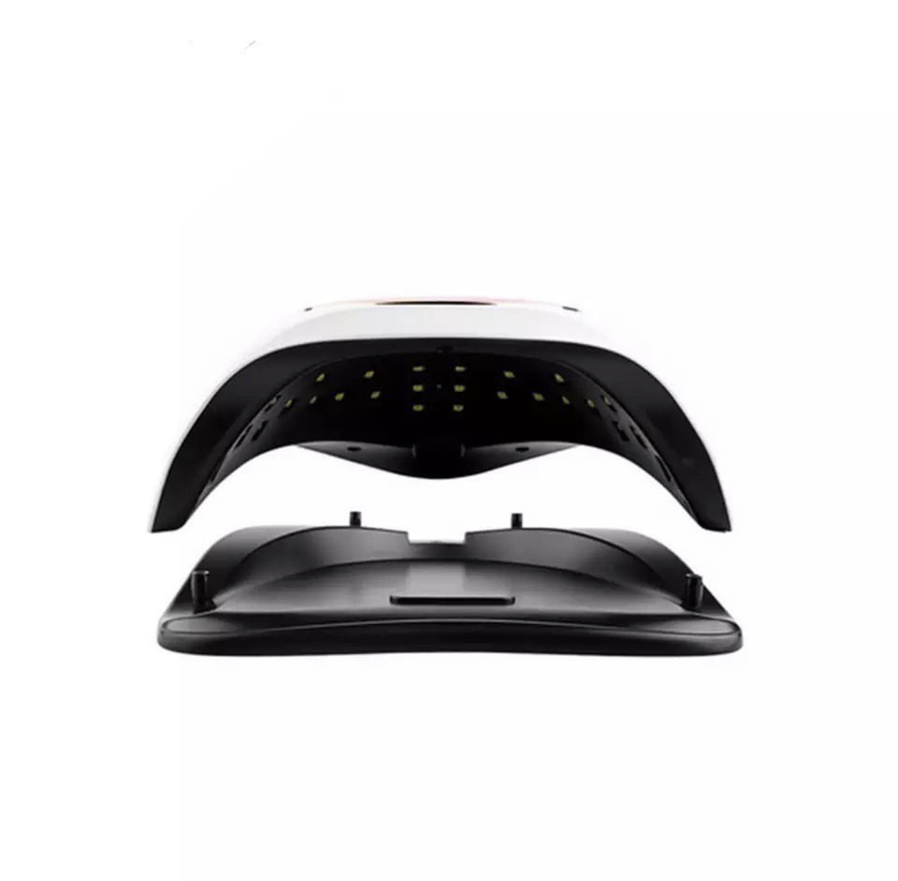 faster curing nail dryers, time-saving design. And the light source evenly distributed inside for all nails when you use it. High power with big body design, 3X faster curing than traditional nail dryers. The built-in LCD screen displays nail-drying time and is equipped with a time memory function that you can set in 10, 30, 60 or 99 seconds low heat mode. Double Light Source Technology - UV and LED nail lamp (365m+630m), the light is closer to white light, No harm to Your eyes and skin. The detachable base design makes the product easy to clean and heat dissipation, and will not cause damage to the skin during use