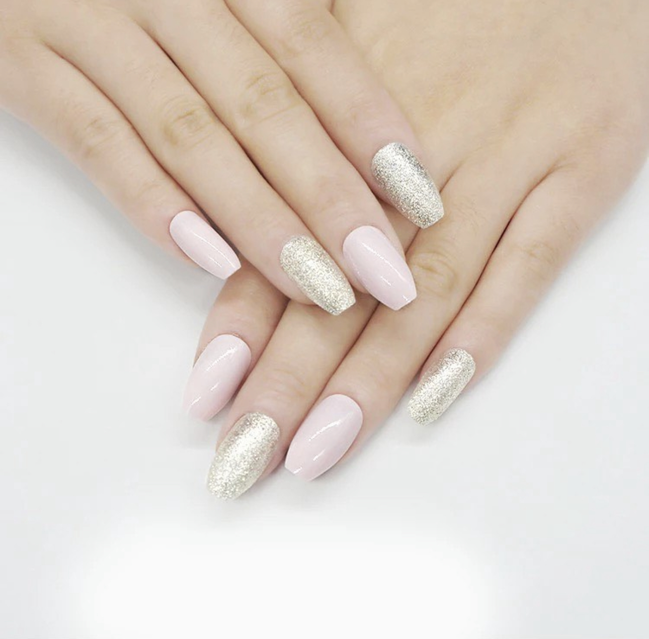 600pcs medium half frosted coffin full cover nails (CHB00988)