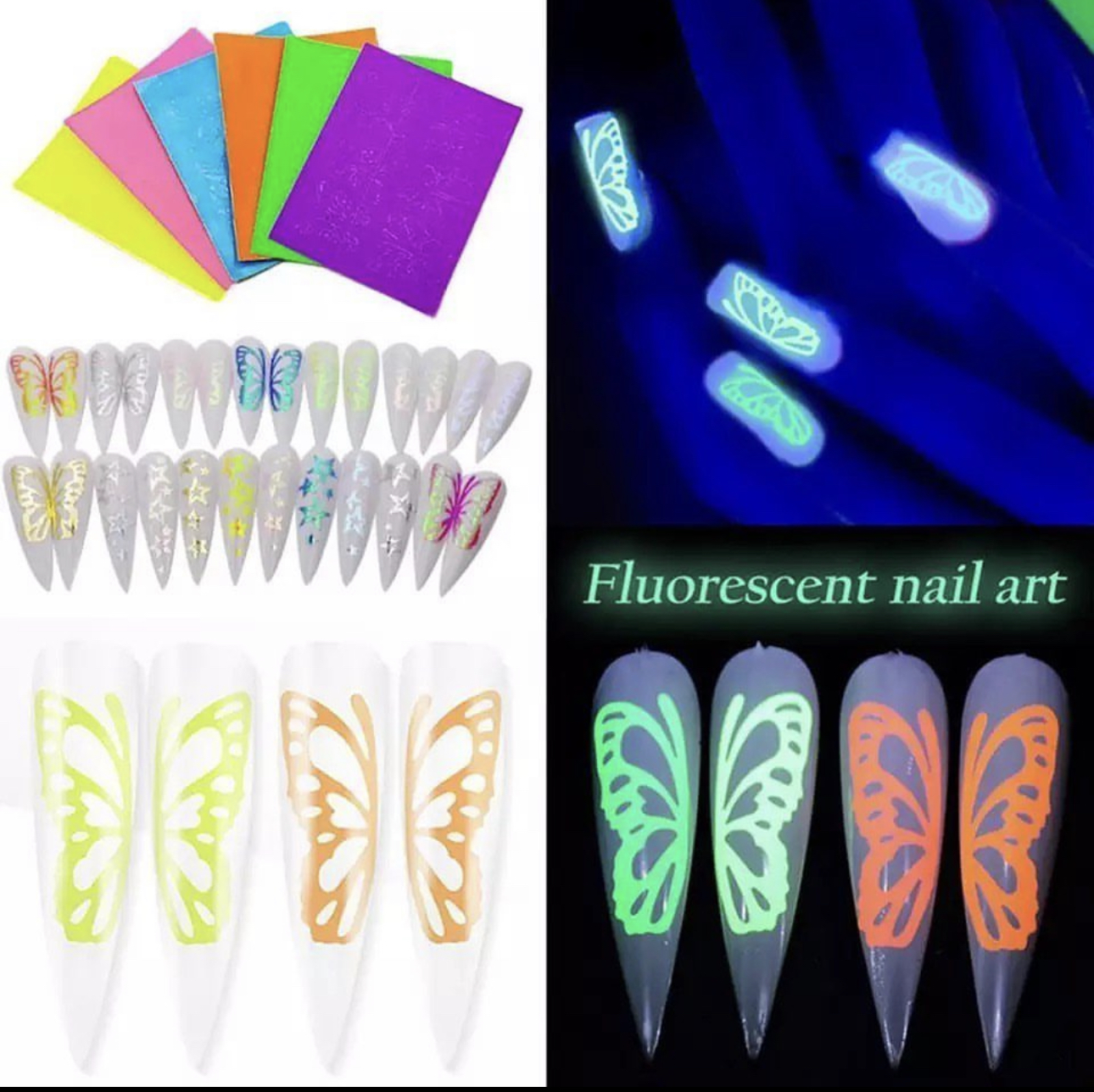 Florescent neon butterfly nail sticker set