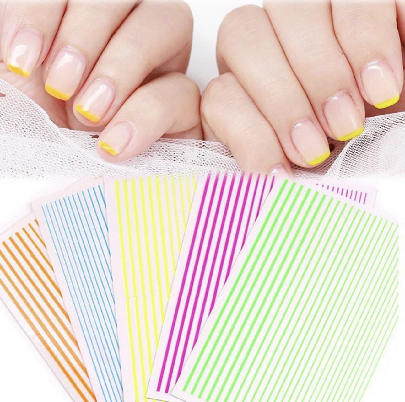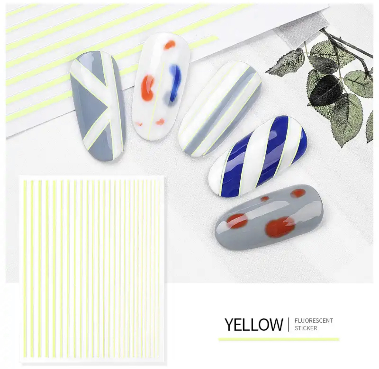Quantity: 1 Sheet Pattern: Stright Stripe Line Size: Approx. 10cm * 8cm Feature: 100% brand new and high quality. Suitable to use on top of nail polish, UV gel polish, acrylic, etc. Easy to apply on natural or artificial nails. Suitable for home use or professional use. How to use: 1. Applying a base coat and wait it dry completely. 2. Select a base color that you like and apply it onto your nails. 3. Select a design and peel off by your nail. (Don't touch the glue) 4. Use tweezers to gently remove the prepared sticker place it onto your nail and press it. 5. Apply top coat for a perfect effect.