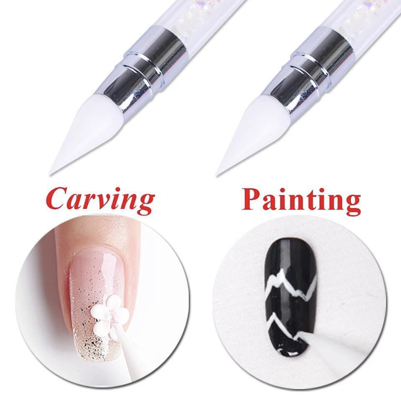 5pcs Dual purpose dotting & silicon nail art brush (CHB02883)