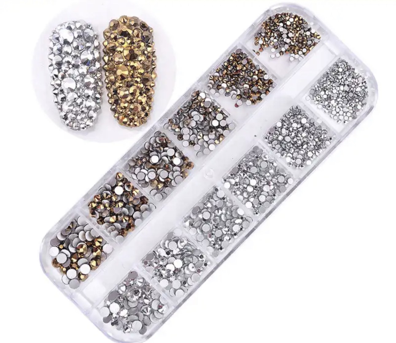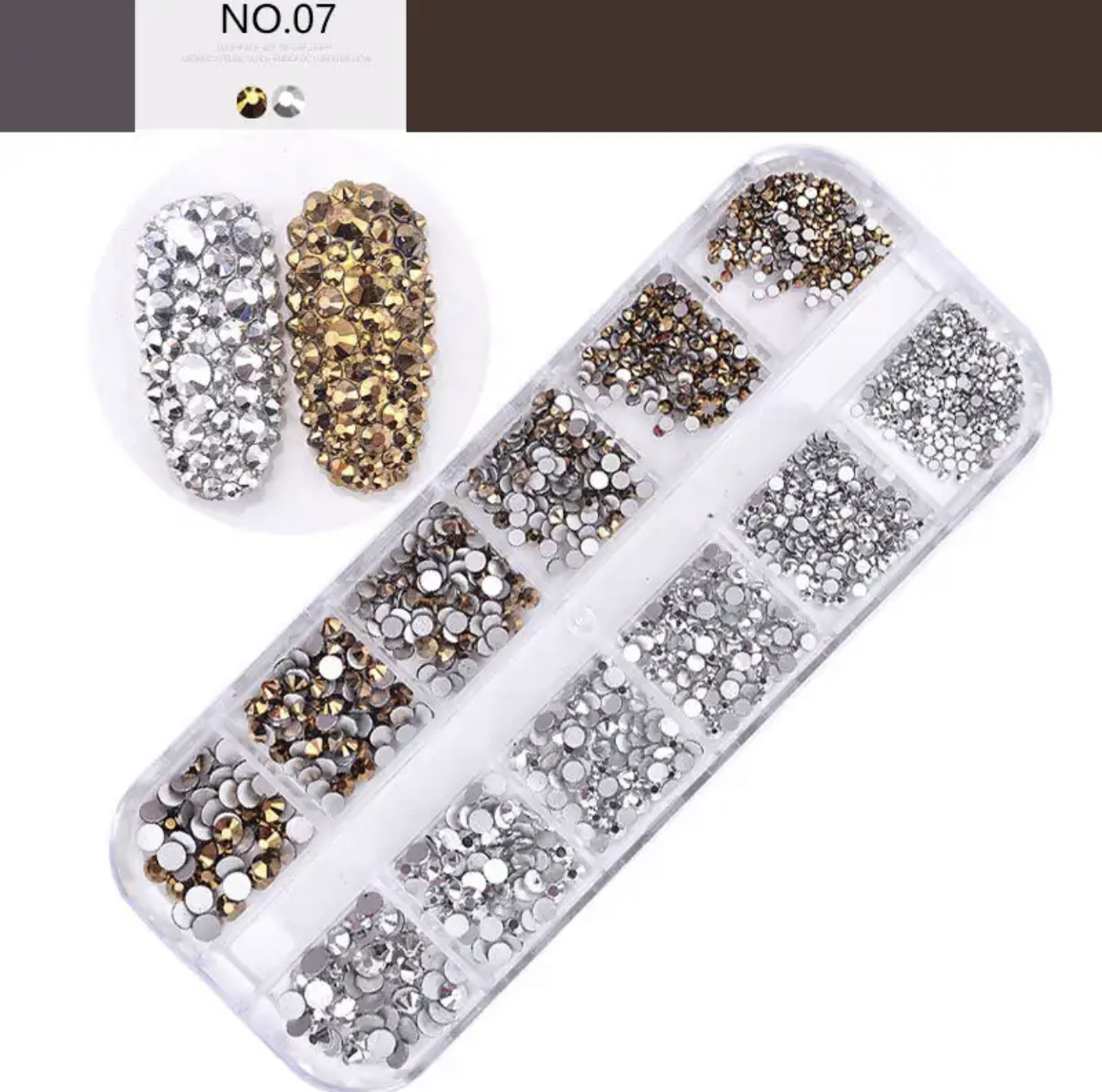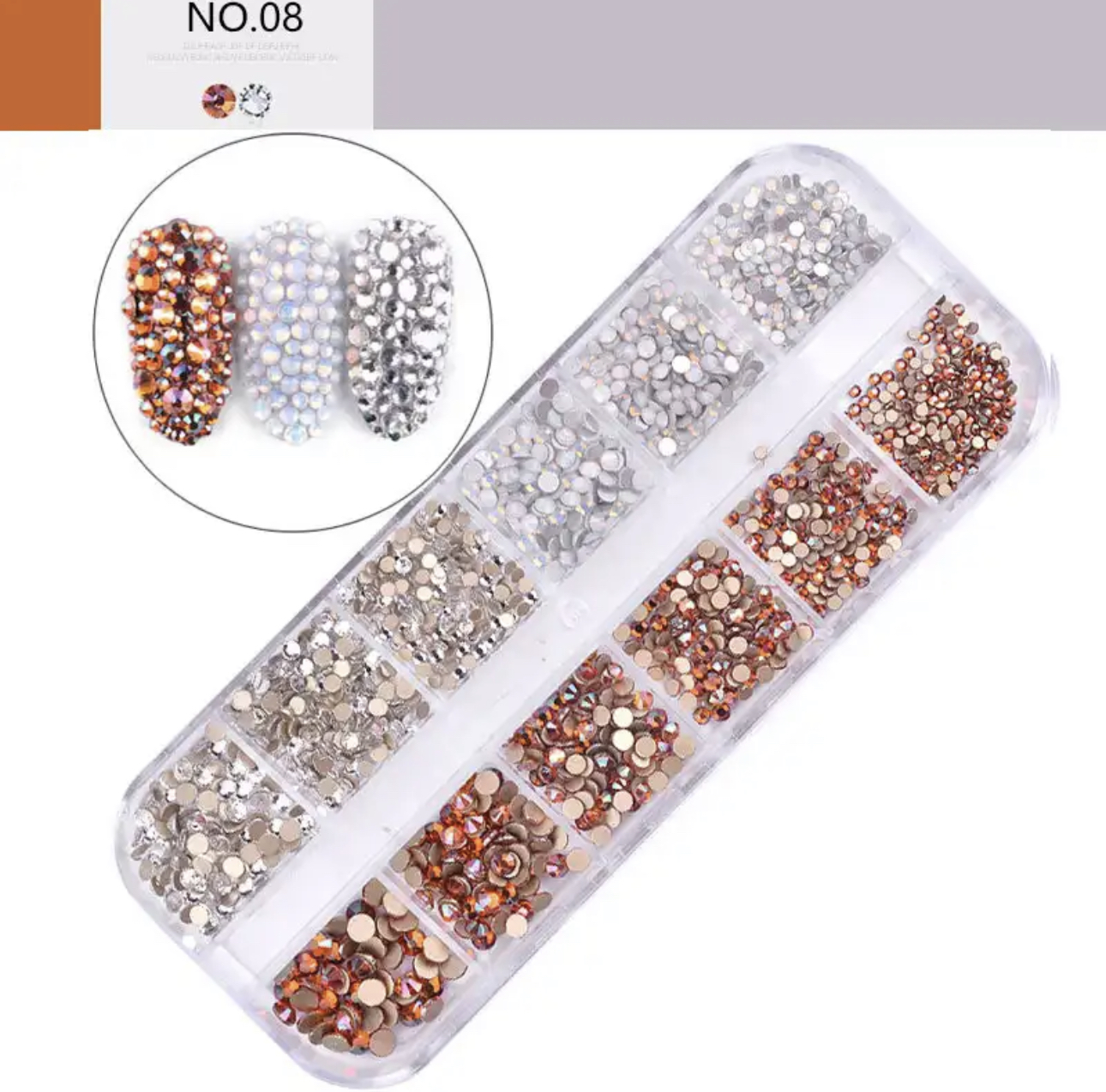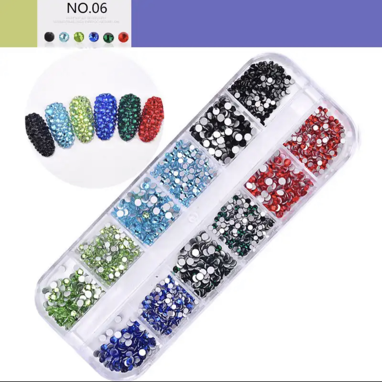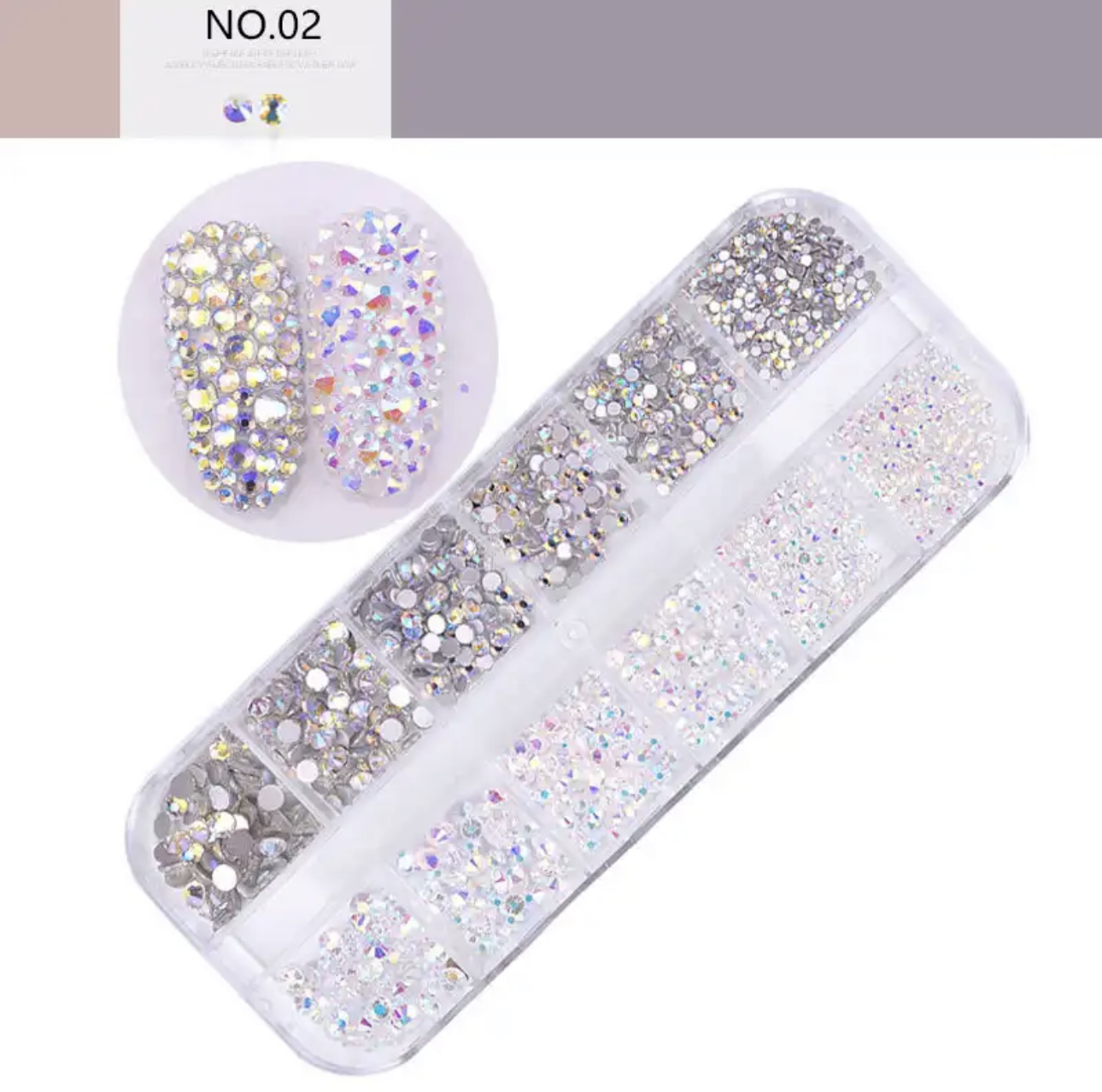 Mix sizes and color flat back rhinestone in a box (CHB00808)