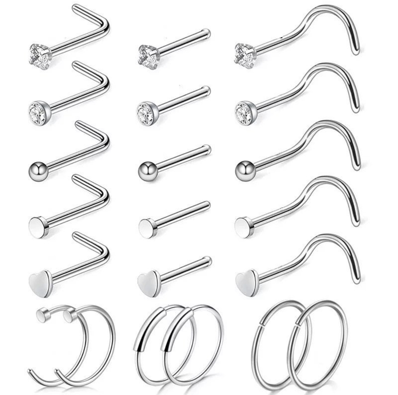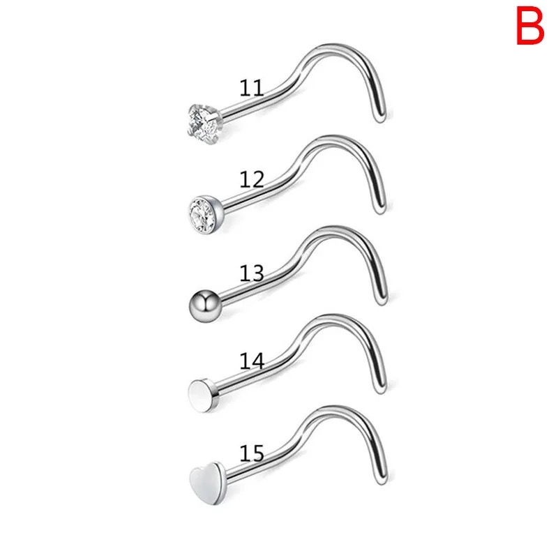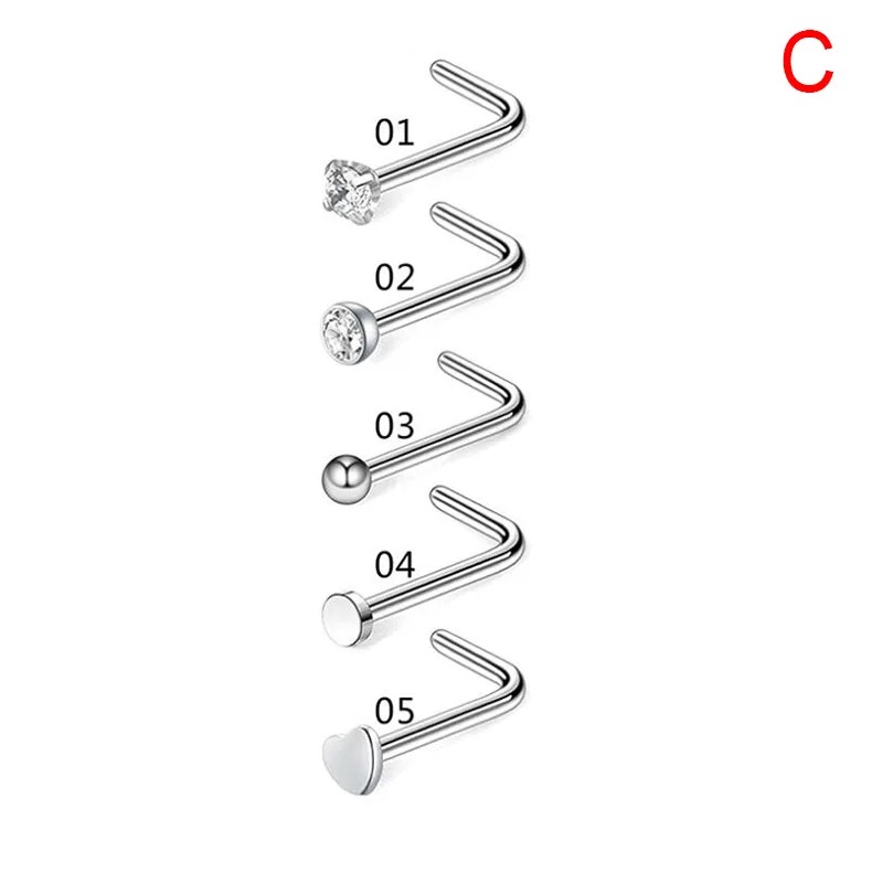 Tags: Stainless Steel Crystal Nose Stud Pack 20G L Shape Nose Rings Set Heart Nostril Piercing Set Straight Pin Body Piercing Jewelry