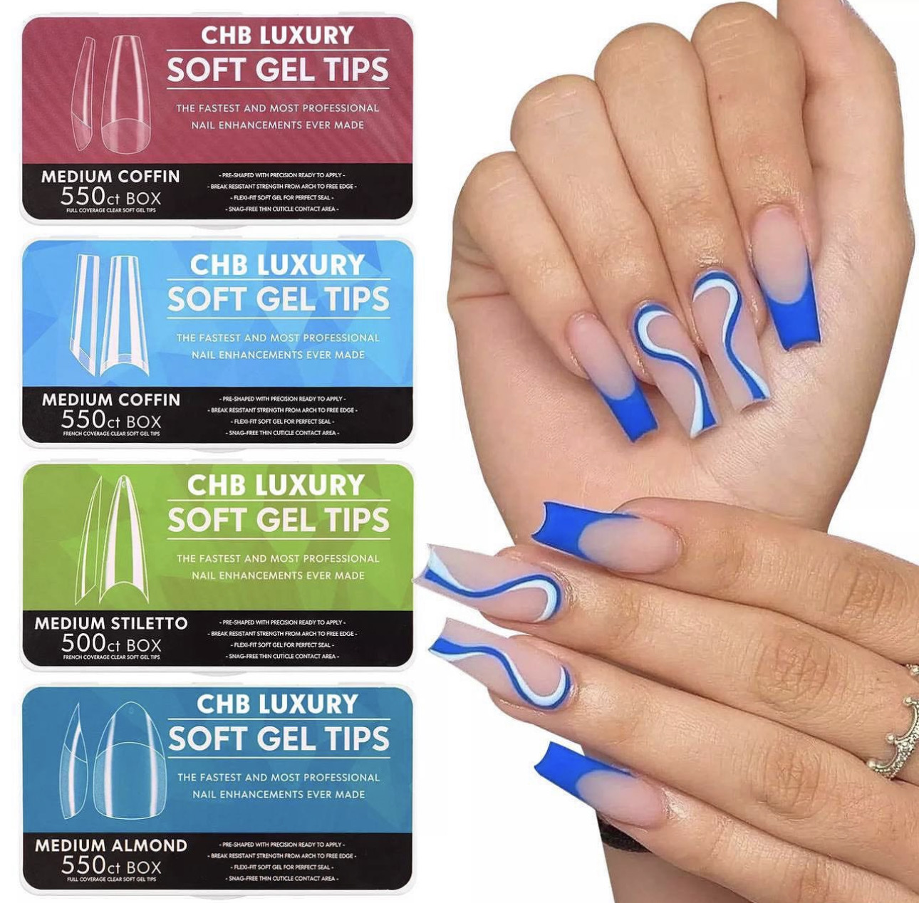 Soft steamless gel nails for press on and acrylics (CHB00913)