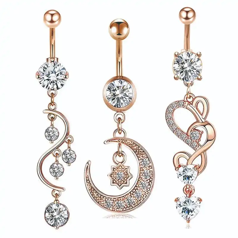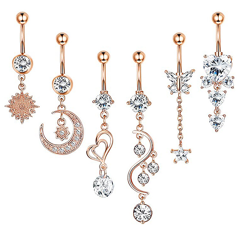 6pcs Rose gold Set of navel piercing ring pendant (CHB00930)