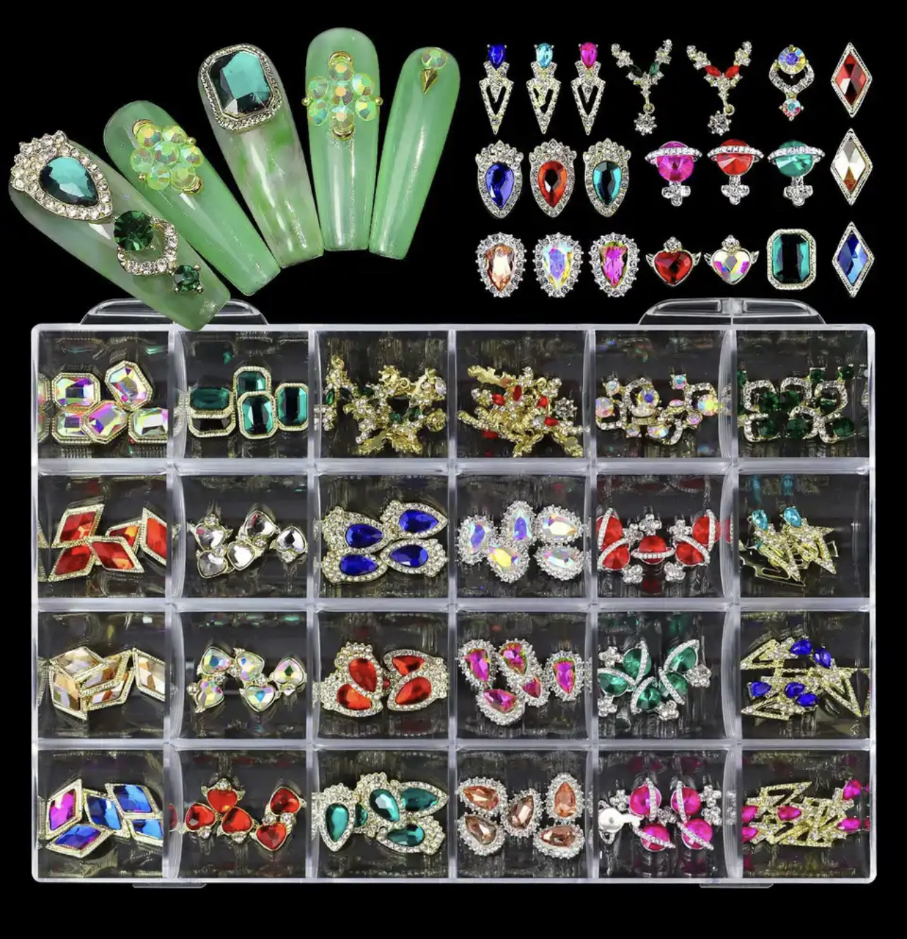 24Grids*5pcs 3D Alloy Nail Art Charms Flat-Back Luxury Heart/Bowknot Nail Jewelry Gem Colorful Crystal DIY Nail Rhinestone &* NOTE: The charms shape and size are random . Specification: Quantity: 120PCS Package Contents:120/240 Pcs Nail Studs (24 styles) Feature: 100% brand new and high quality Nail decoration Easy to apply on natural or artificial nails Clean the surface of your nails, brush the base polish, and place it onto nails Seal with a clear topcoat You can also use them to decorate your home, cell phone's case, glasses, made card, body art, etc.