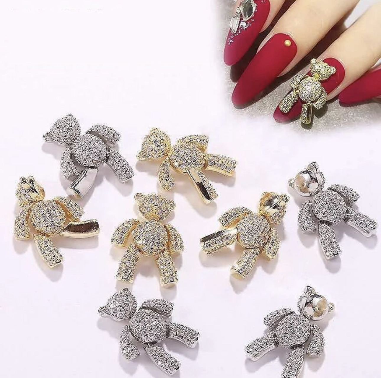 Zirconia bear Nail art jewelry
