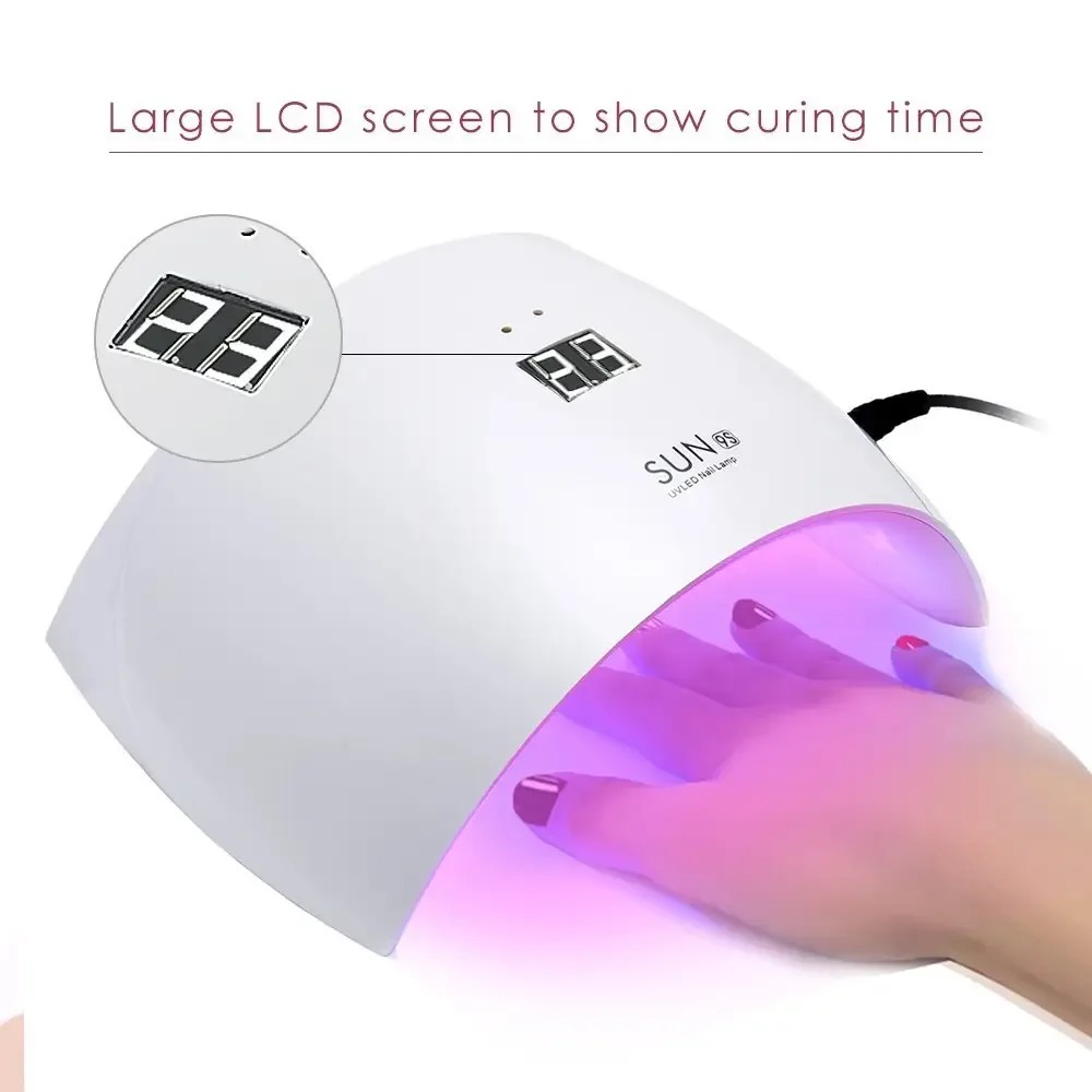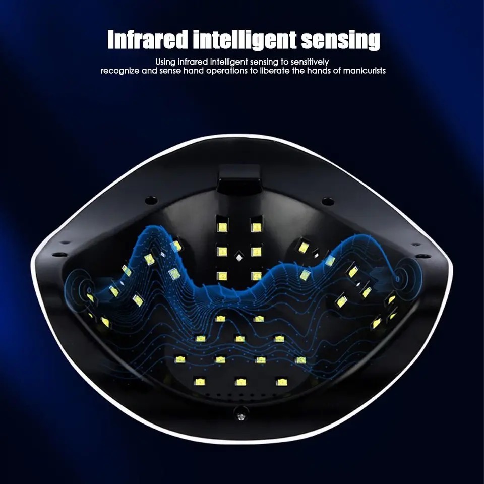 Thanks to the intelligent and convenient infrared smart sensor technology, a sensitive hand control can be detected sensitively and the manicurist's hands can be freed The 168W nail dryer uses dual light source LED filament lamp beads. 36UV dual light source LED filament lamp beads can be used to dry different types of nail polish, such as: B. Glue phototherapy glue, extension glue, temperature change glue and reinforcement., Cat eye glue, etc. No blind spot lighting, fast baking speed Removable plug-in bottom plate design, easy to bake, manual baking glue is convenient and fast, easy to clean, to prevent the growth of bacteria Four speed adjustable digital timing display, choose time according to your situation, there are 10S fast curing, 30S, 60S and 99S painless modes You can enjoy at home nail salon which can be used as gifts for Valentine's Day, Birthday, Mother's Day and Christmas. Material: ABS plastic Power: 168W Number of lights: 36 Wavelength: 365-405NM Feature: (1) Intelligent infrared sensor (2) Detachable base Function: four speed timing 105, 305, 605, 995 painless mode Package size: 23 * 18 * 11CM, Scope of delivery: 1 nail lamp 1* plug 1 * description