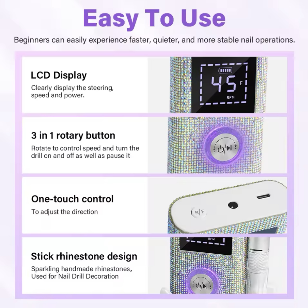 Luxury crystal rechargeable efile 45000RPM (CHB01177)