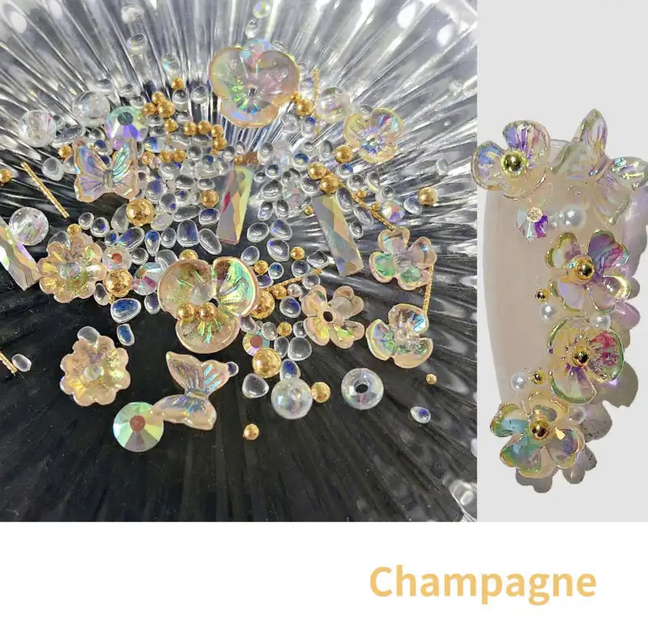 Crystal flower with butterfly 3D nail design (CHB01185)