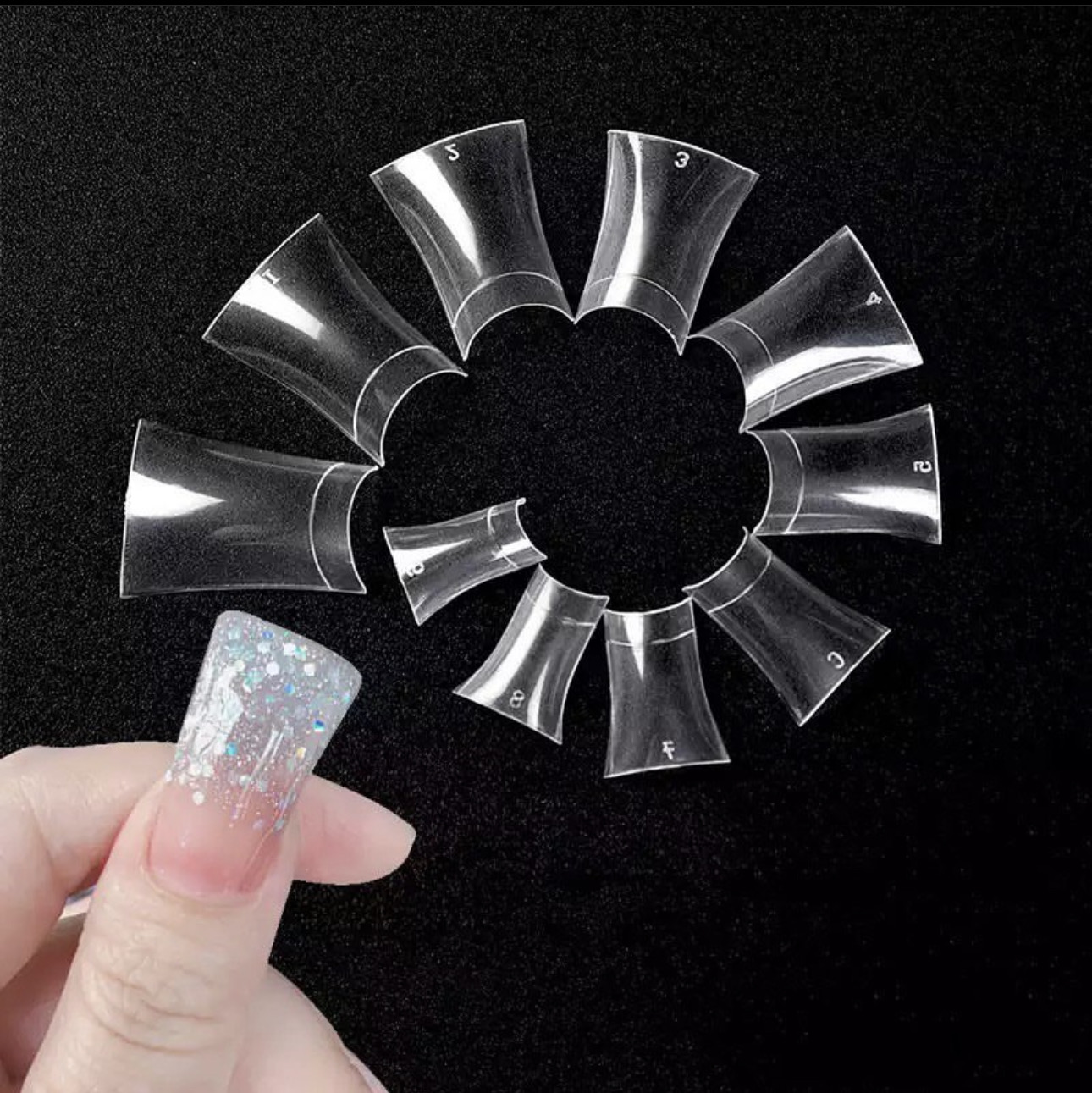 High Quality Material】: Clear nail tips adopts quality soft gel material, made clear nail tips structure is firm and not easy to break;The gel x is kind of green environmental material,makes clear nail tips durable and breathable. Duck nail tips give you a safe and comfortable manicure experience.Thickness and firmness of the acrylic false curve nails are sturdy enough to last about 2-3 weeks, clear nail tips with a long service life,providing you with a safe and comfortable experience. 【Duck Nail Tips Design】: The appearance of clear nail tips is shaped like a duck feet, and the design of the bottom narrow and wide french nails top allows more space for nail charms y2k DIY creation of duck nail tips. The half cover false nails design of the duck nail tips will fit tightly to your natural nail without being bulky. The unique duck nail tips style allows you to enjoy the lovely and fashionable nail tips art experience and get more admiring eyes. 【Perfect 12 Sizes】: There are 240PCS of acrylic nails tips, and clear nail tips are available in 12 different sizes to fit most people's fingers. The number 0-11 is clearly engraved on the duck nails tips. Each size has 20PCS, so that you can find the suitable crystal duck feet style nail tips accurately and quickly when using.Half cover false nails for acrylic nails professional and beginners. How to use: 1. File the nail surface lightly. 2. Apply a very thin layer of base gel, and cure it under UV/LED lamp. 3. Select a suitable shape & size false nail tip. 4. Apply extension nail gel on nail mold, use nail art pen with slip solution to make gel smooth. 5. Stick it to your real nail and make sure it fully plying-up, and cure it under UV/LED lamp. 6. Remove the nail mold, triming the shape and polish your nails. 7. Apply gel top coat and cure it under UV/LED lamp.