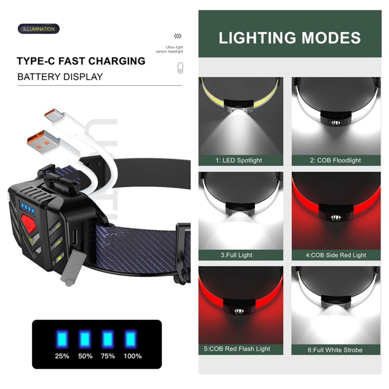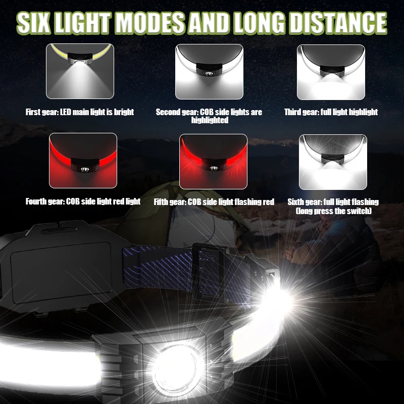 Tags: 2022 COB Camping Headlight Induction Built-in Battery Rechargeable Red Warning Cycling Head Light LED Portable Fishing Headlamp Eyelashes