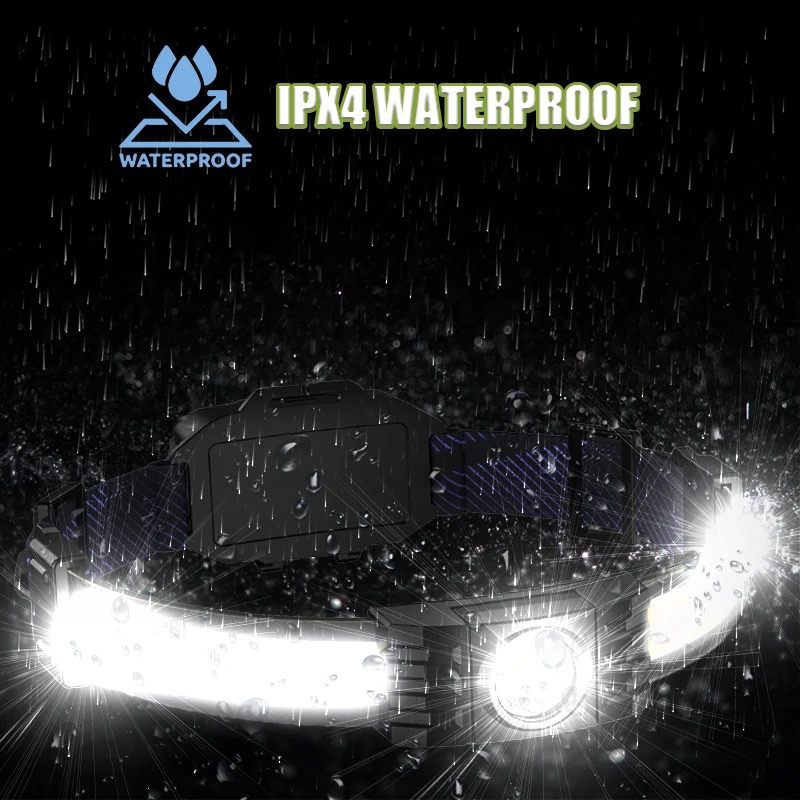 Product name: COB Belt Head light Light source: XPG+COB/COB (white light+red light) Conventional power supply: built-in polymer battery Charging method: TYPE-C data cable Material: ABS + aluminum alloy Function: XPG-COB-COB+XPE-red light-red light flashing Product weight: 129g/143g Battery life: 3H