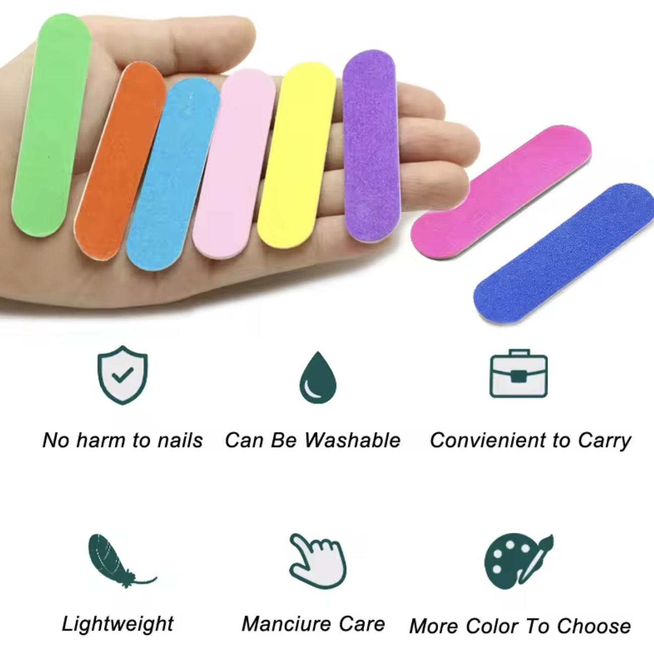 100% Brand New Nail Sanding Files Polish Acrylic Block Buffer This sanding file is essential tool for manicure & pedicure For preparation before any nail art treatment Sandpaper on surface, foam on second layer, plastic in middle-level Size: 6*1.5*0.12cm Total quantity: 100 pieces Suitable for nail salon, nail art school / college, personal use, wholesale, etc Specifications 100pcs*Mini Nail File