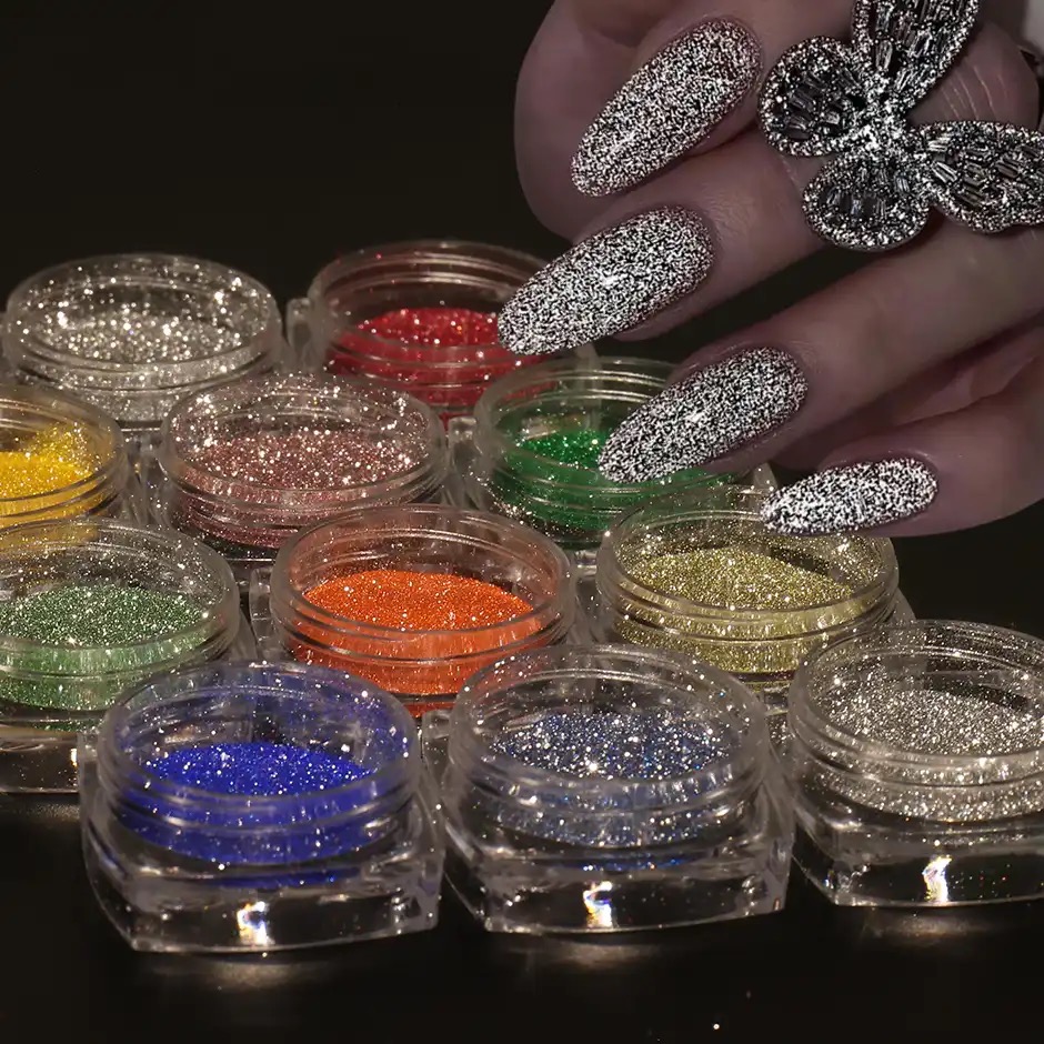 Tags: Box Reflective Nail Glitter Neon Power Gel Polish Dust Gold Sliver Sparking Nail Pigment Power DIY Decorations