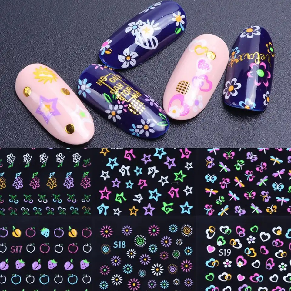 Color: White Color Type: Luminous/Glow In The Dark Size : 12x7.5cm Designs: Christmas/New Year's Eve Nail Design Pattern:Snowflake/Elk/Snowman/Santa Claus/Christmas Tree/Deer Packing: 24 sheet glow in the dark sticker