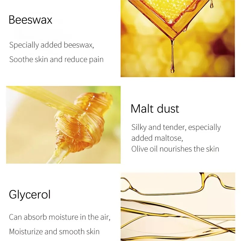 Notice: 1) When using it for the first time, avoid applying it on a large area. It is necessary to test the skin on a small area first to see if it may cause allergies. If available, please suspend use. 2) Non professionals, do not apply large areas at once. For the first use, small areas of hair removal can be applied locally. 3) This product can be used for body hair removal such as legs, hands, back, etc. It is not recommended for large head areas. 4) Sugar wax is a water-soluble product that can be directly cleaned with clean water to remove residues. How To Use: 1) Using professional techniques to pick wax. 2)Apply directly and evenly to the area that needs hair removal. 3) Quickly tear off against the direction of hair growth.