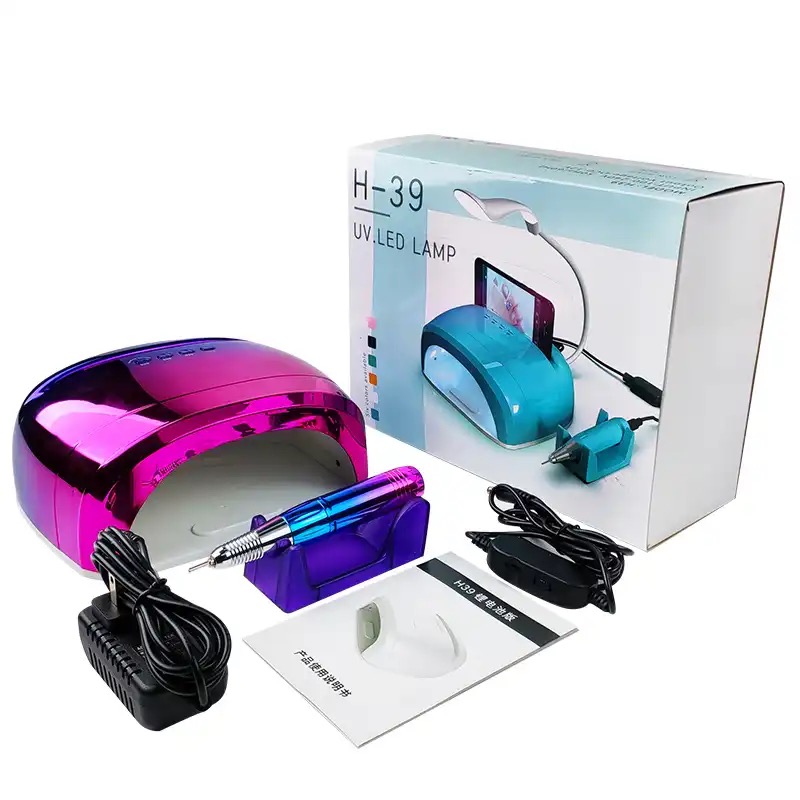Best Selling Product Description 2022 New Arrival 96W Gel Polish Dryer Cordless 2 in 1 Nail Lamp with Nail Drill Color Rose & Blue, Purple & Green Package Detail Nail Drill +Nail Lamp +Nail Drill bit Nail Lamp Blubs 39 pcs Nail Drill Speed 0-30000RPM Charge Time 2 hours Using Time 5 hours 39pcs Bulbs can curing gel fast. 2 in 1 nail drill lamp easy to carry CE ROHS/MSDS