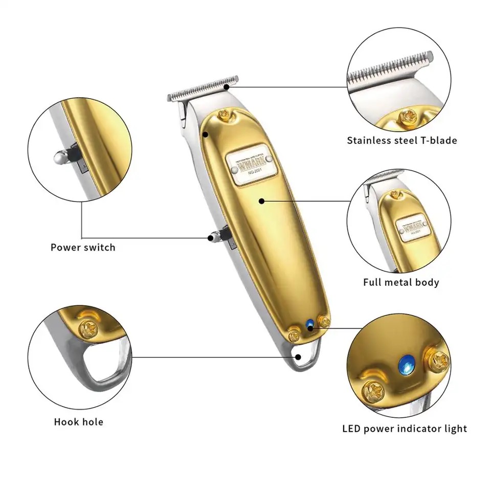Tags: WMARK NG-2021 All-metal Golden Sliver cord/cordless detail triimer with T-blade detailer USB charge 1400mAh high speed motor