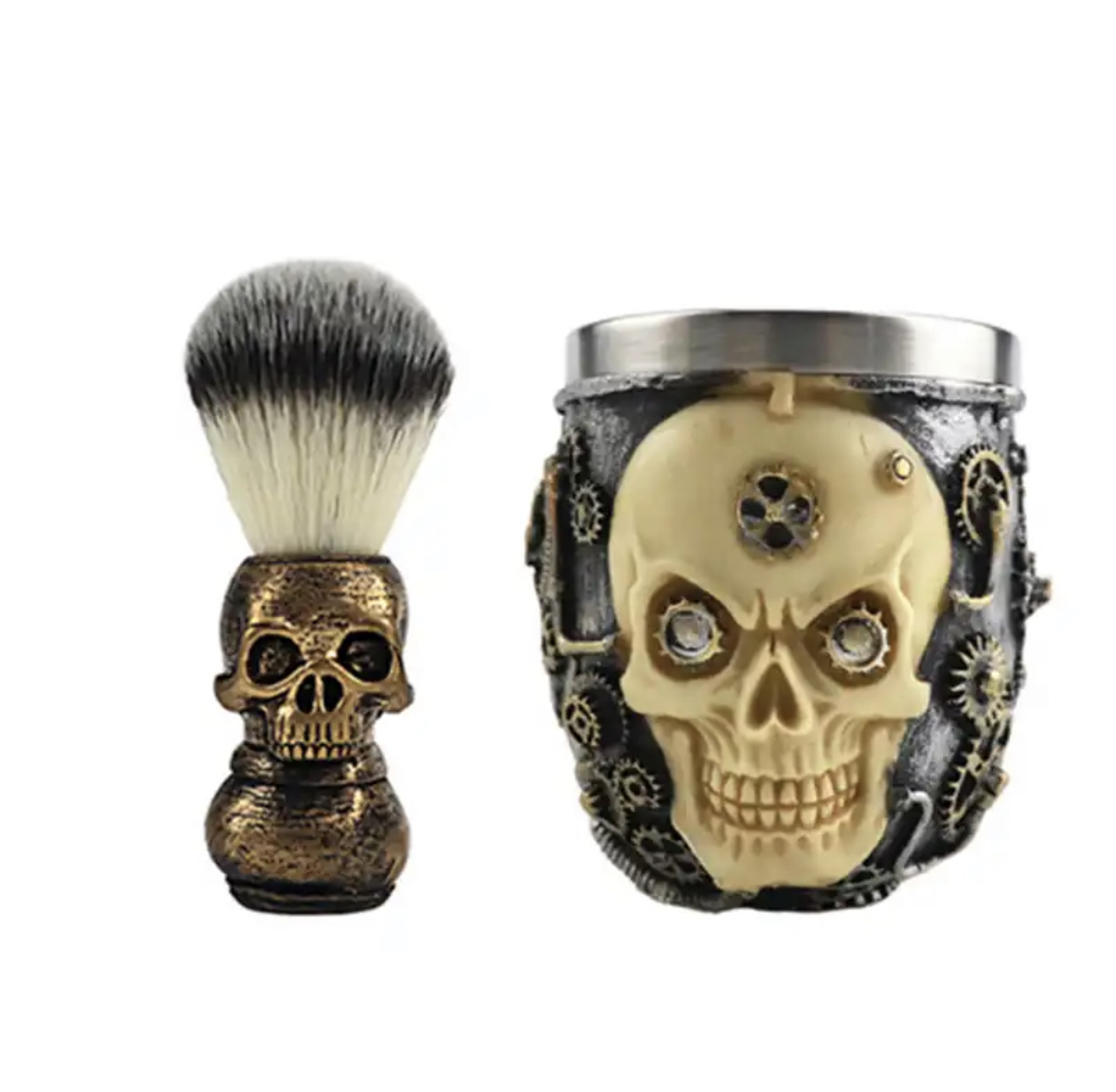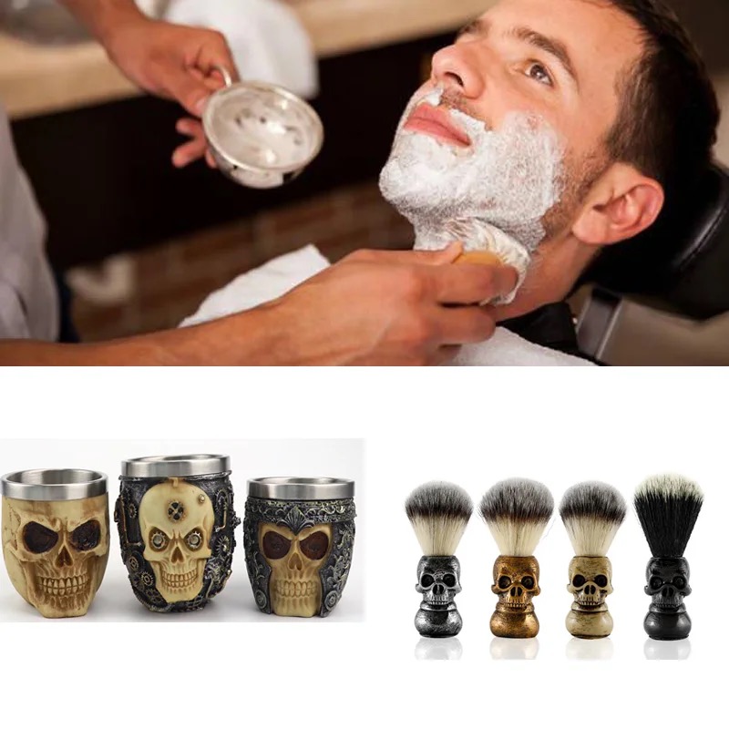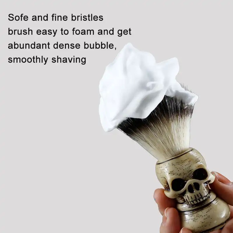 1. 100% pure badger hair shaving brush: The bristles of the shaving brush are made of pure badger hair, which softens and lifts the beard, while gently removing the skin before shaving. 2. Stainless steel shaving soap bowl: The shaving bowl is made of high-quality stainless steel, which is not easy to rust, and it is not easy to break when dropped. 3. [Easy to use] This razor set has a handle to ensure easy grip and keep your hands clean. With this shaving kit, you can quickly put your shaving tools on the bathroom vanity 4. Skull shaving brush handle: This shaving cream brush and bow are made in the shape of a skull, which is very attractive to every gentleman. Lightweight and portable, suitable for family and travel use. 5. Suitable for all types of beards, such as beards, goatees, cat whiskers and other delicate beards. It is a perfect gift and facial cleaning tool for men on Valentine's Day, Father's Day, birthday or other holidays.