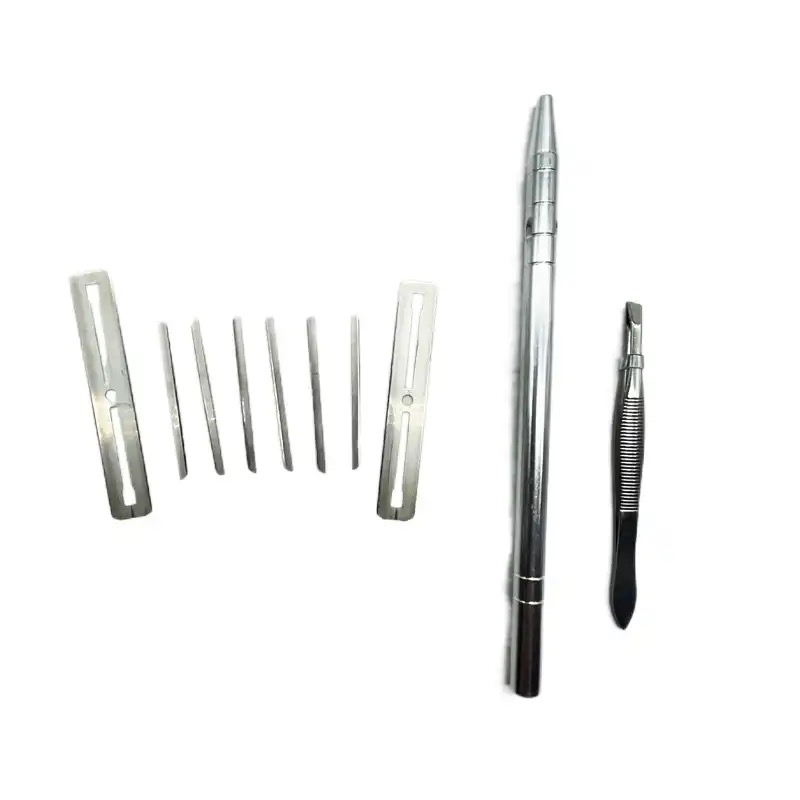 Amazing new hair design Engraver pen!!! Can be used to make cool texture on hair, beard and eyebrow Made of quality stainless steel, rust-proof & durable. Anti-slip handle, safe & convenient to use With 8pcs blades, can be used for a long time You can make any kinds of cool hair texture at will with our product. Also, it can be used to shave beard and eyebrow. Come and have a try now! Specifications: Color: Engraving pen color randomly sent Length:Approx.15cm The combination includes: 1 engraving pen (random color) + 8 blades +tweezers NOTE: If you are buying a separate engraving pen, it does not contain blades and tweezers. If you need a blade you can buy a combination NOTE: (This is very important) If not correct, the blade easily cut the skin! if you do not know how to use this product, do not use it directly for the body. use a head dummy or other product to practice before use. there is 1 ~ 2 cm error because it measures munual Posted by Horizontal.