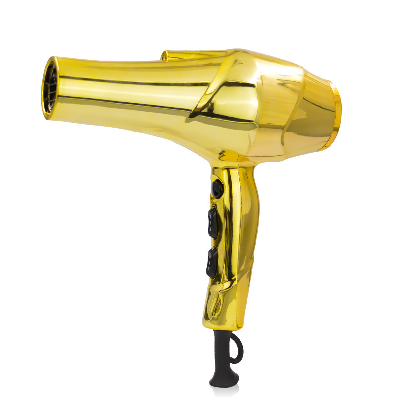 Product Introduction Color: gold Voltage: European standard (220V/60Hz) and American standard (110V/50Hz); Power: US 1800W/European 2000W; Wire length: 2.1m; Product features: Cold and hot air conversion 5-gear wind speed+temperature control regulation, powerful motor, colorful shell, fast dry hair 2 air collecting nozzles;