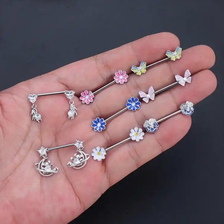 Tags: 2Pcs Love Heart Nipple Piercing Stainless Steel Nipple Ring Bar Breast Nail Body Piercing Jewelry Barbell Nipple Chain Rings