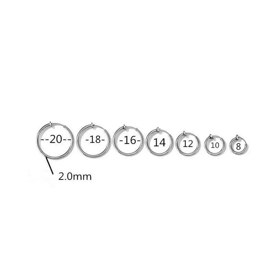 Type: Ear Cuff Earrings Material: Gold Plated Titanium steel Size: 8mm, 10mm, 12mm, 14mm, 16mm, 18mm, 20mm Feature: Retractable, No Need Piercing Color: Silver Gold Black Mullticolor Package including: 1 pair × Earrings