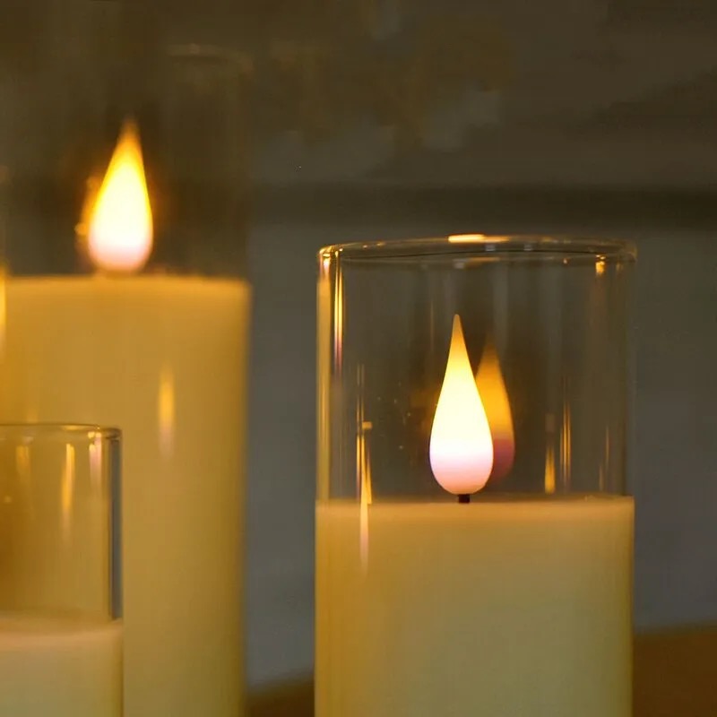 -1 x3D Wick Glass Flameless Candle Dia.5.3cm (Height is optional)