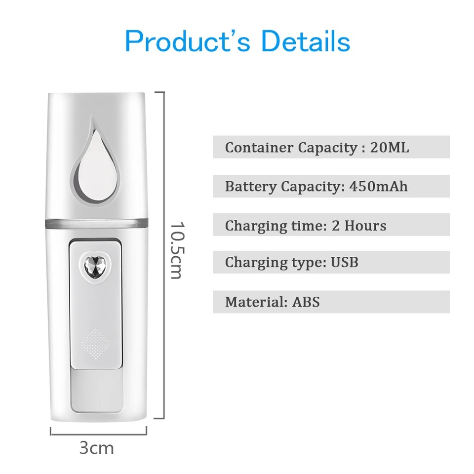 Tags: 20ml Mini Humidifier Portable USB Rechargeable Nano Personal Face Sprayer Cool Mist Maker Fogger Humidifier Beauty Skin Care