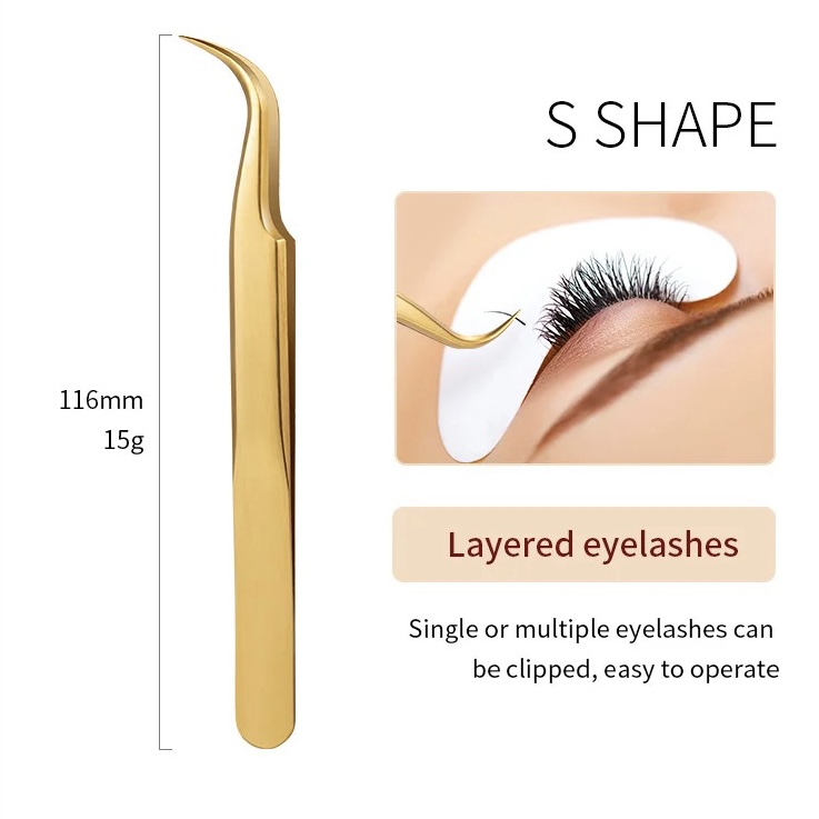 High-Quality Stainless Steel Material This product is made of high-quality stainless steel, ensuring durability and longevity. Versatile Use These evelash tweezers can be used for a variety of purposes, including nail art, makeup, and eyelash extension. Precise Application The fine tips of these tweezers allow for precise application, making it easy to achieve a flawless look. Easy to Clean These tweezers are easy to clean and maintain, ensuring that they remain in top condition for years to come. Specification: Name: Grafting Eyelash Tweezers Material: Stainless Steel Color: Gold Size:Approx.11-14cm Weight:Approx.15g Features: precise bite, comfortable and effortless, easy to flower Features: 1.High hardness and high elasticity,clamping small parts, not easv to deformation 2.Great help in doing eyelash extension 3.Also could be used to pick up other tiny items. 4.Suitable for picking, decoration clipping, nail art rhinestones and stickers. 5.Perfect for both professional use or home use. Package Included: 1Pcs* Eyelash Tweezers
