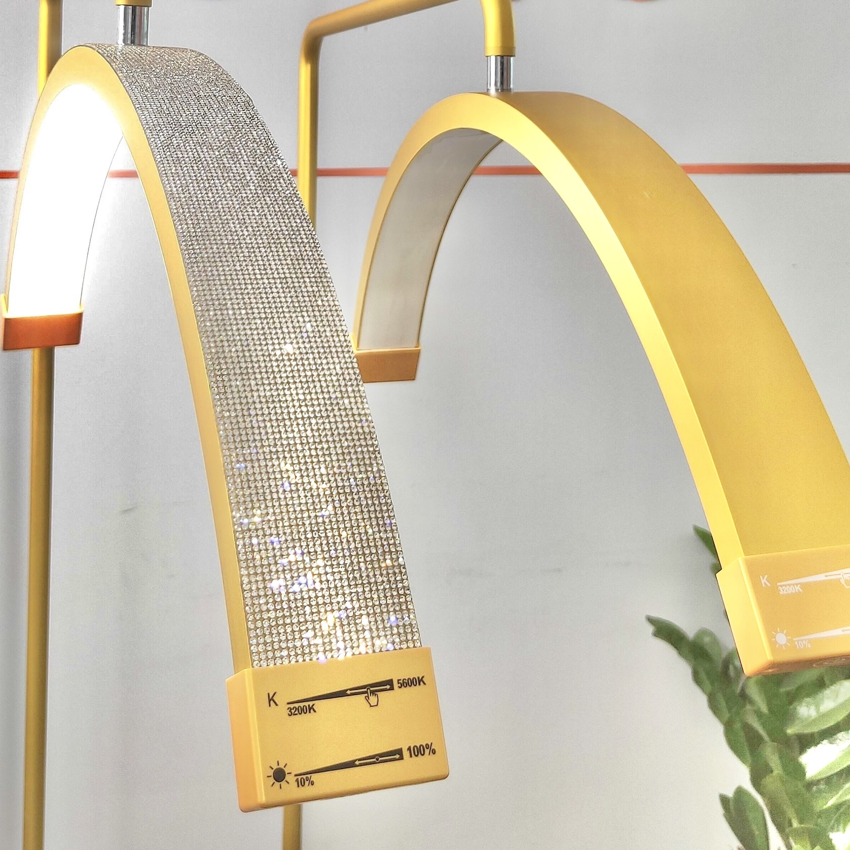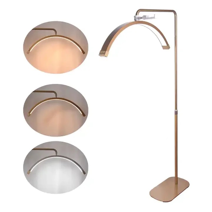 Product Description: [Half-moon Light) fosoto special half-moon shape design with floor stand, It will make your work without any shadow obstruction.with 320pcs high-quality lamp beads, 45W high power and 95+ high color rendering.suitable for lash, eyelash, tattoo, desktop vlog, beauty salon live streaming, beauty project, nail enhancement etc. (Bi-Color Temperature) 3200K-5600K adjustable color temperature, Adjusting brightness and color temperature with fingers, More advanced and aesthetically pleasing, which can meet your needs of light in different usage conditions. (CRI≥95) A color rendering index greater than or equal to 95 allows you to work clearer, Better than similar products on the market, with more realistic colors and high-quality videos and images, It can help your customers take care of their skin under bright lights without deciding to glare. [Stable base) A base of approximately 3.4kg makes the half-moon light more stable when rotated 360°, making it convenient for storage and working at different angles. [350° rotate lamp head) Special 350 ° lamp head rotation prevents the lamp head from falling off when the 360 ° rotation is excessive. 350 ° rotation effectively solves the problem of lamp head falling off (adjustable stand) The stand can be freely adjusted from 101cm/39.7inch to 171cm/67.3inch, with a convenient and flexible design to meet the needs of different heights in your daily work.