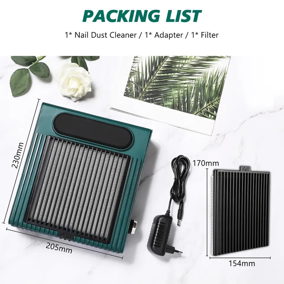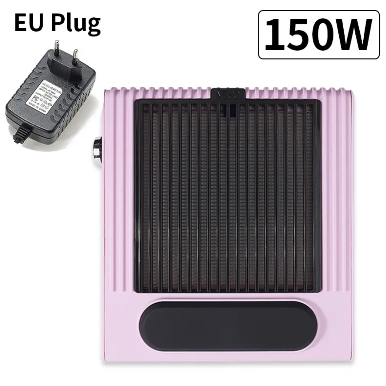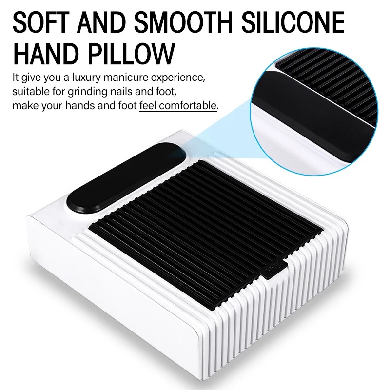 Product Description: Dust collector for nails. Makes you away from dust Inhalation. This nail salon dust vacuum for nails is the best tool to collect dust while filing & curing polish nail, dip powder nail, nail art. A must-have for nail salon, allow customers to enjoy a better quality of service. Take a more professional and high-end atmosphere to nail salon. Also suitable for those who enjoy nail art DIY and doing a manicure at home, nail vent dust collector. Adjustable Suction Nail Vacuum Dust Collector This nail dust collector machine with the adjustable suction switch, it's convenient to adjust nail fan suction according to your need. Nail Duster with Reusable Nail Dust Filter Nail Vacuum Dust Collector with a reusable filter, you can easily take out the nail duster filter and conveniently clean it with a hairdryer or nail duster, no need to change it every time. PROFESSIONAL dust collector for nails salon Soft and smooth silicone hand pillow providing you a luxury manicure experience, suitable for grinding nails and foot, make your hands and foot feel comfortable. Note:The nail dust cleaner is 150W power, which is nearly maximum power in the marketplace. A powerful motor ensures powerful suction. So the noise maybe a little loud, but it helps you and your customer being away from dust Inhalation.