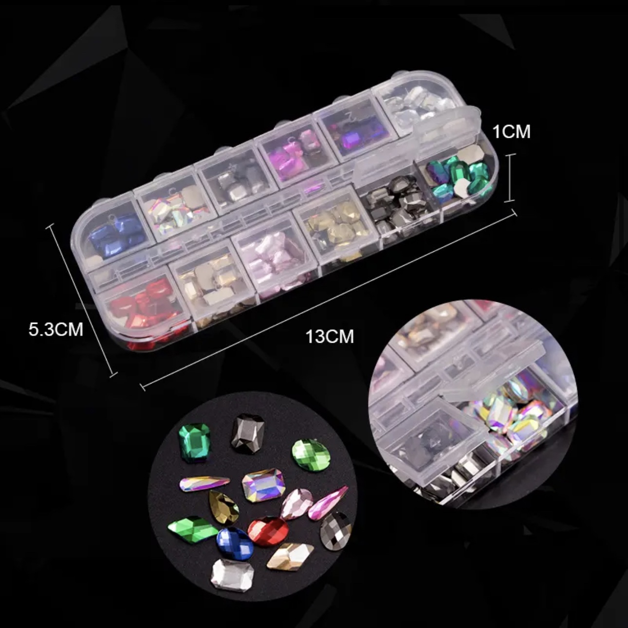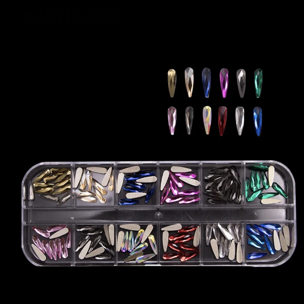Multi shape colored rhinestone in box (CHB02339)