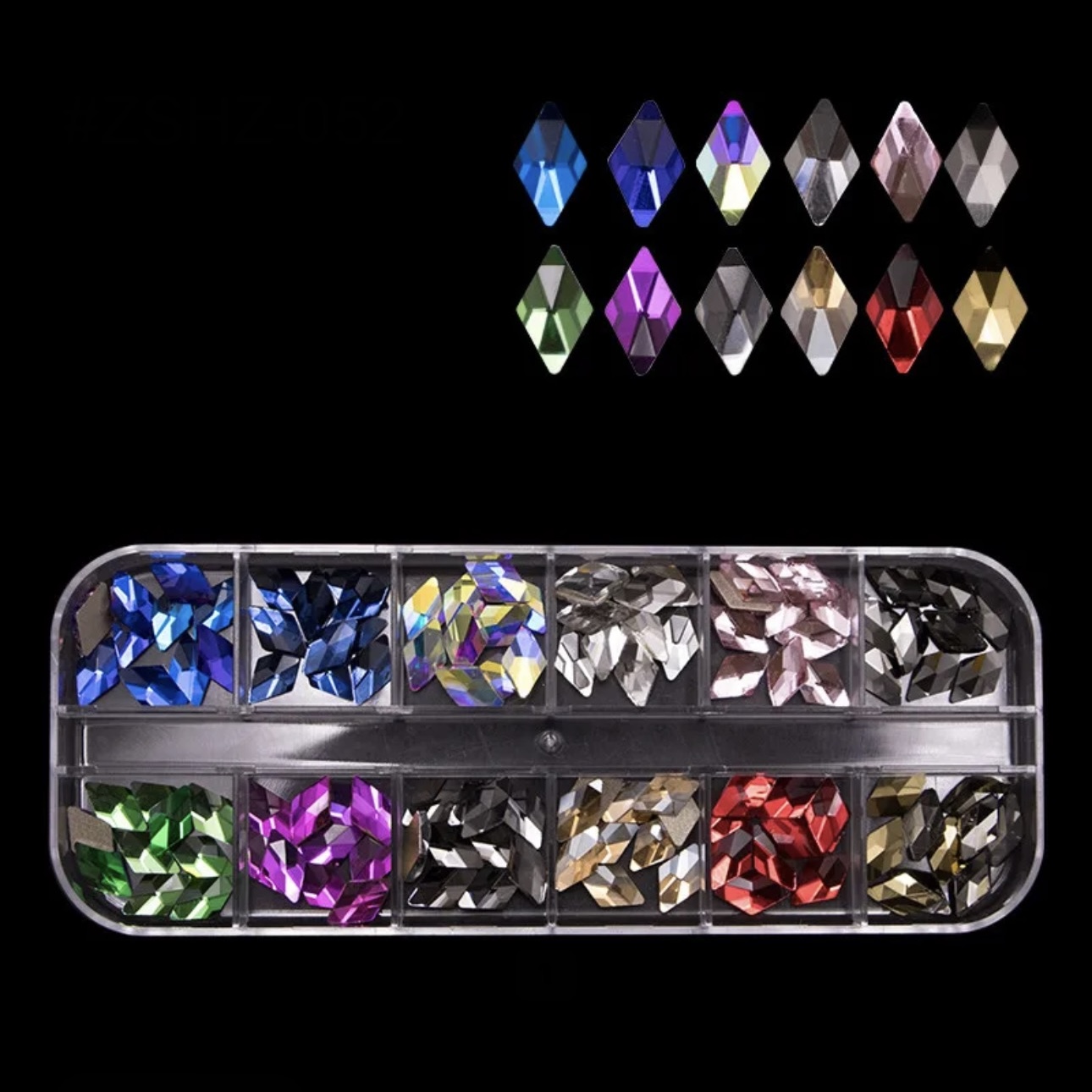 Multi shape colored rhinestone in box